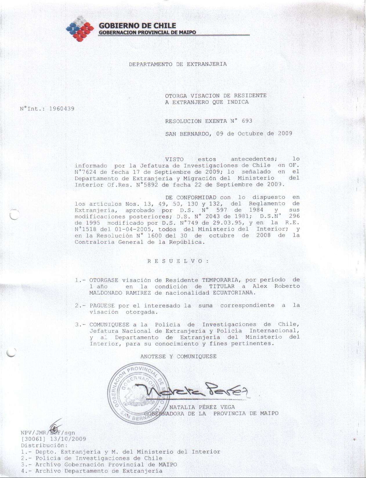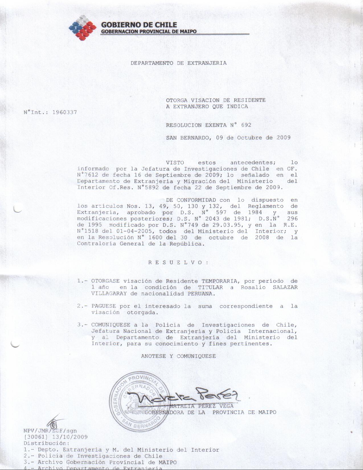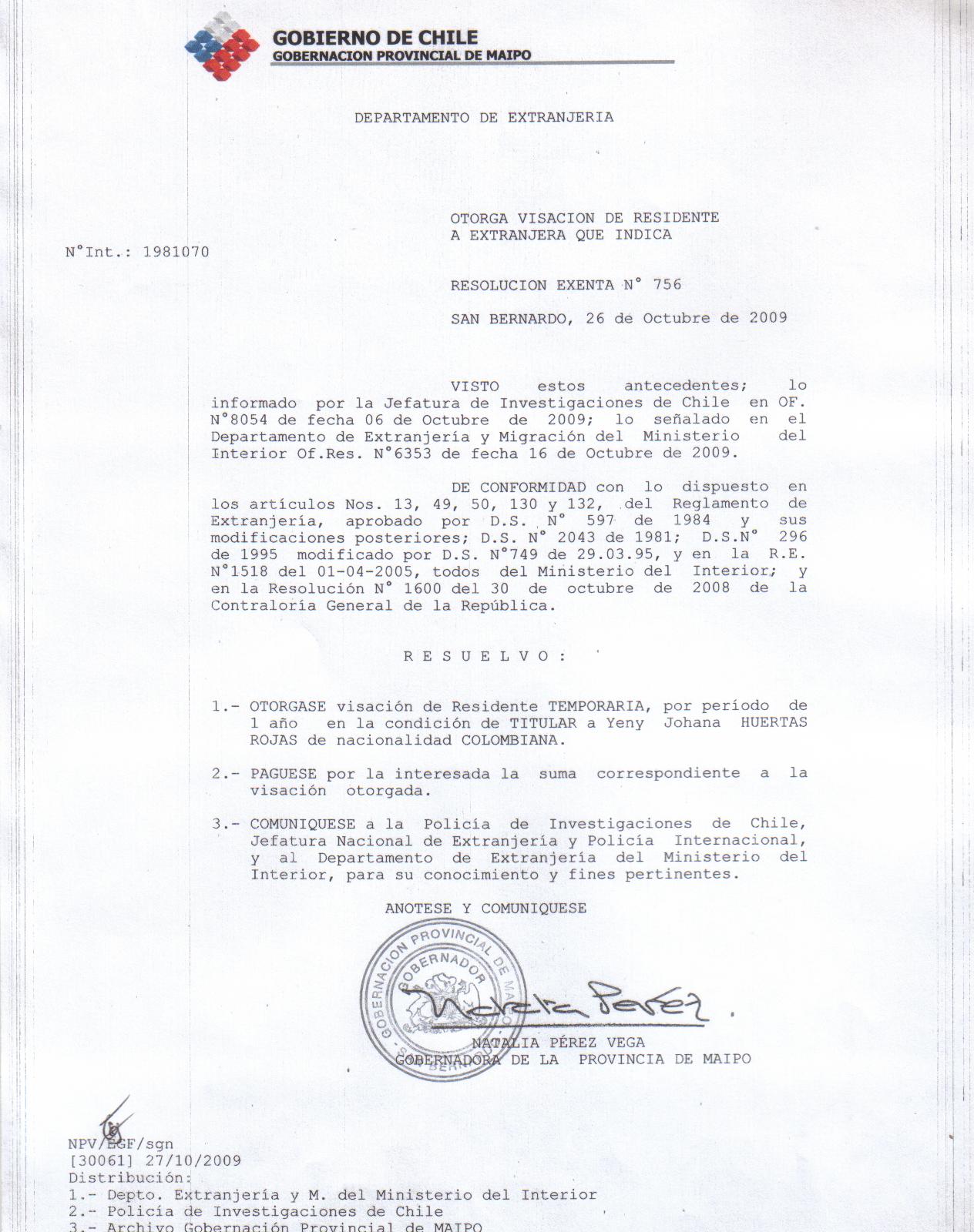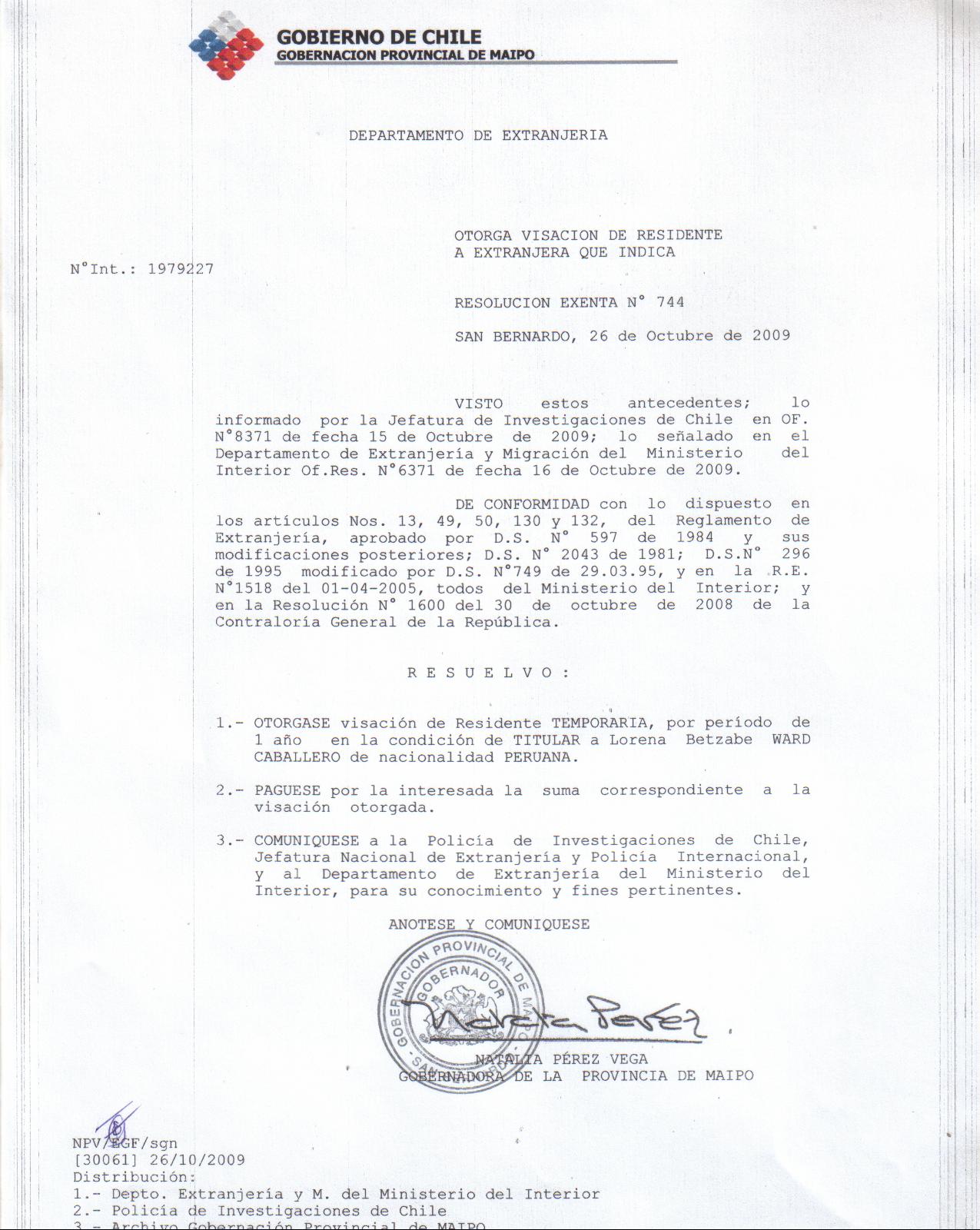 OTORGA TITULO DE RESIDENCIA |