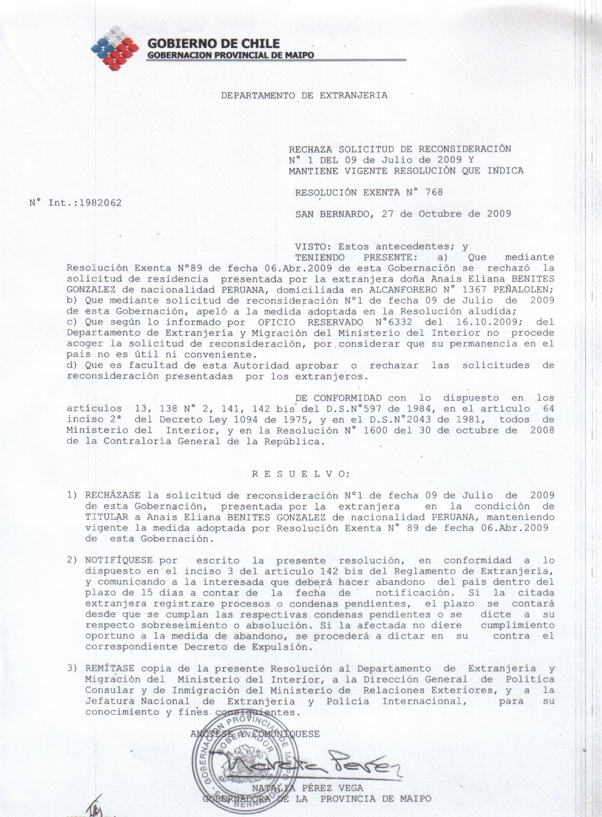 RECHAZA RECONSID RECHAZO VISA (CON ABANDONO DEL PAIS) |