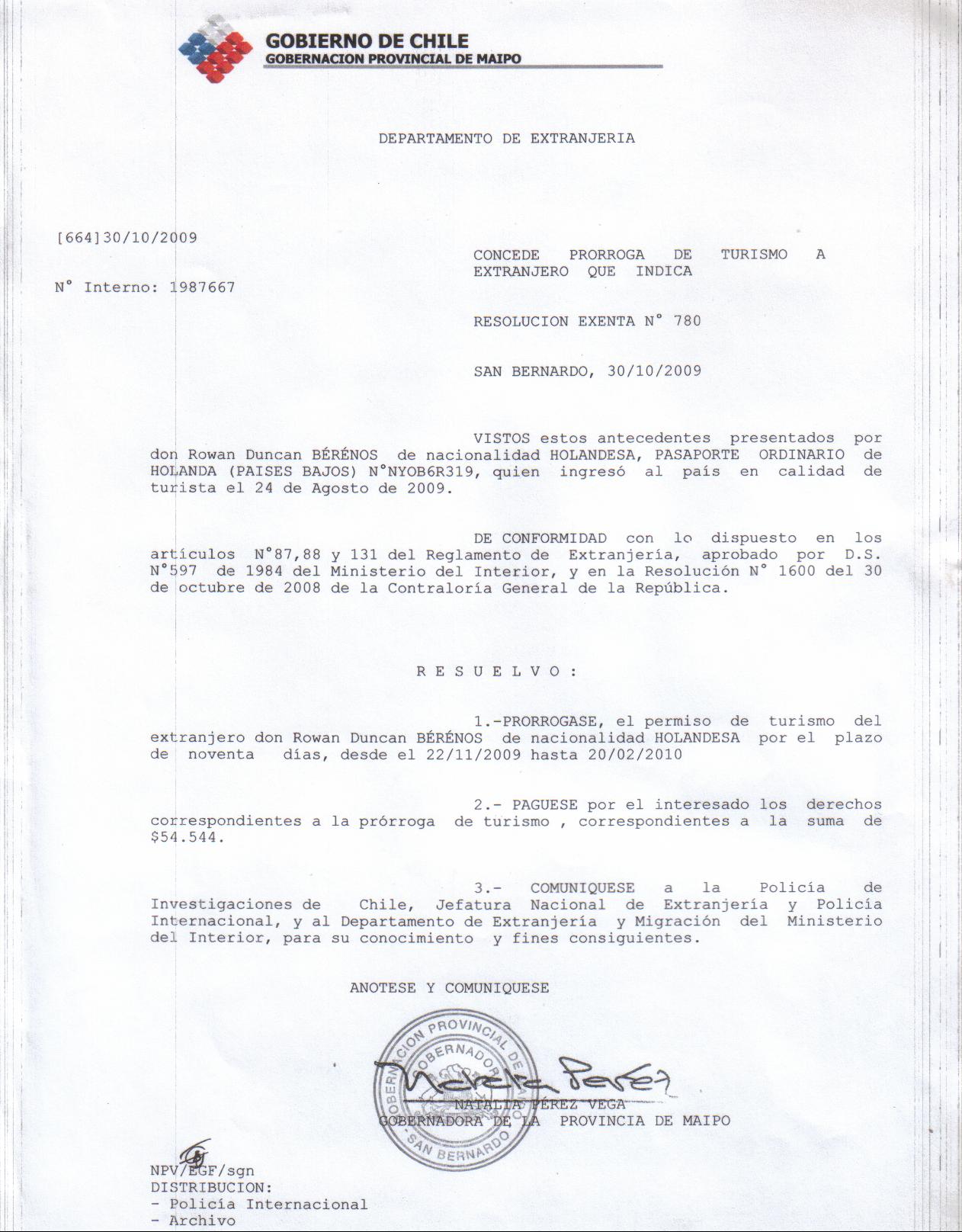 OTORGA PRORROGA DE TURISMO |