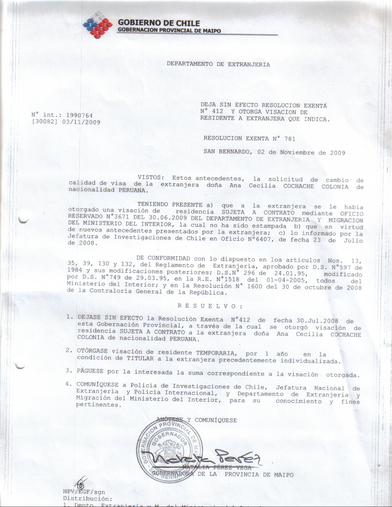 DEJA SIN EFECTO RE VISA OTORGANDO OTRA VISA |