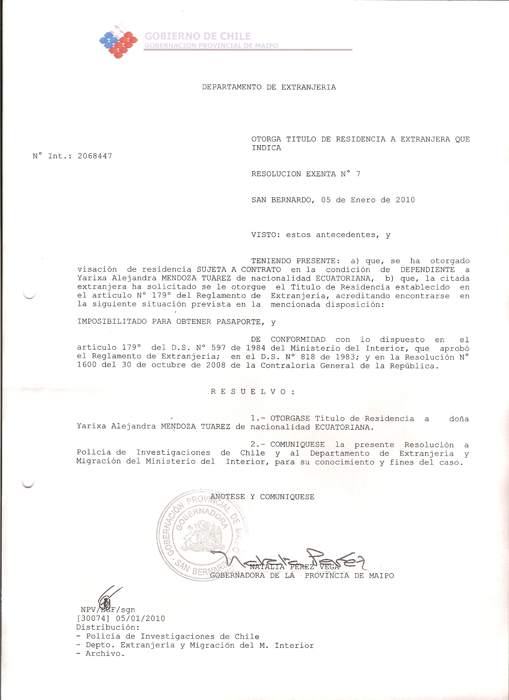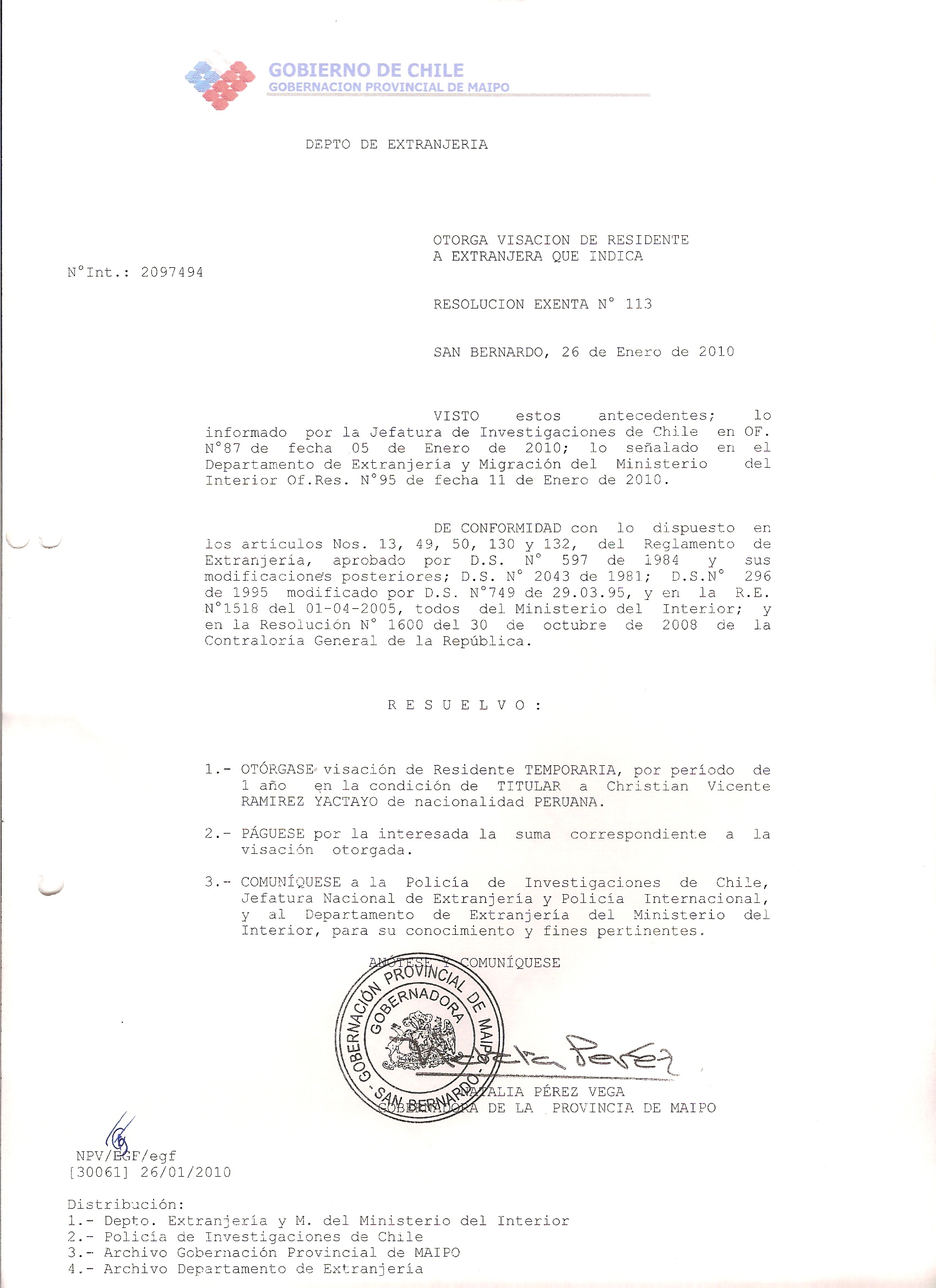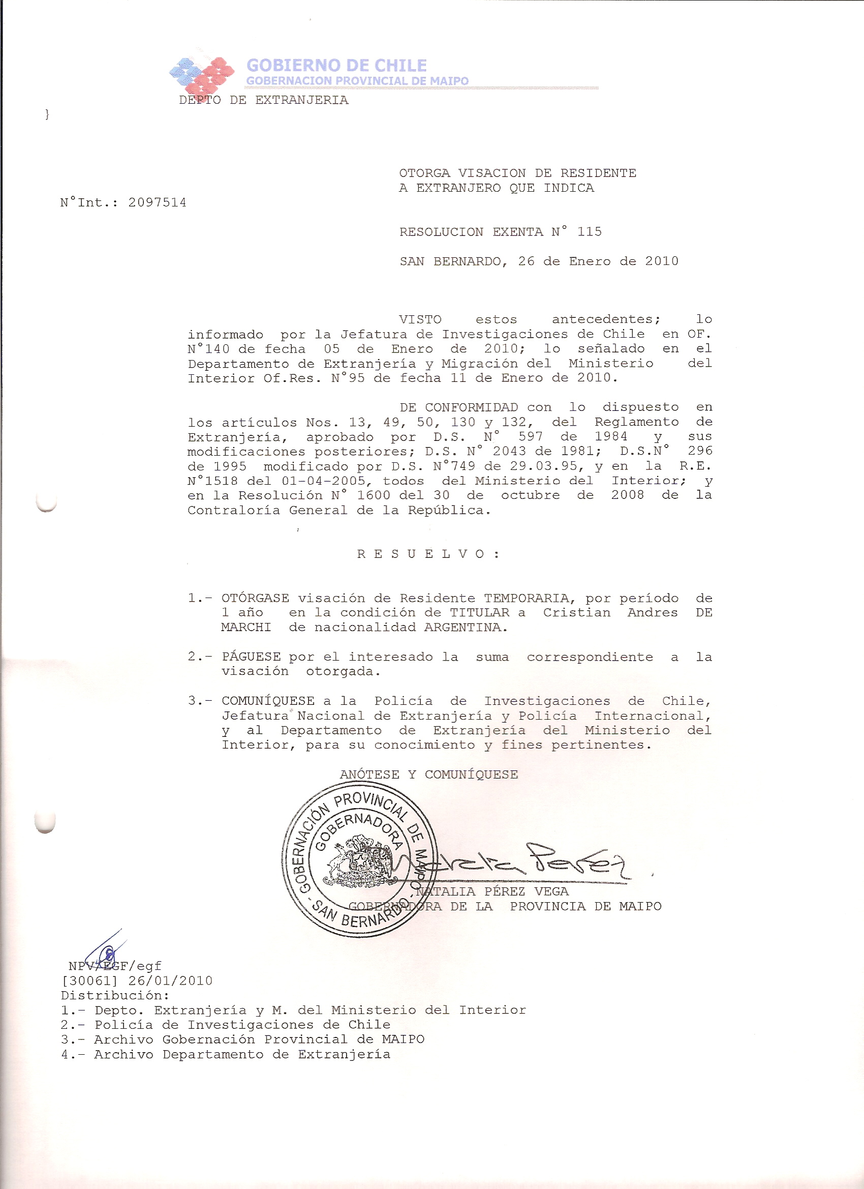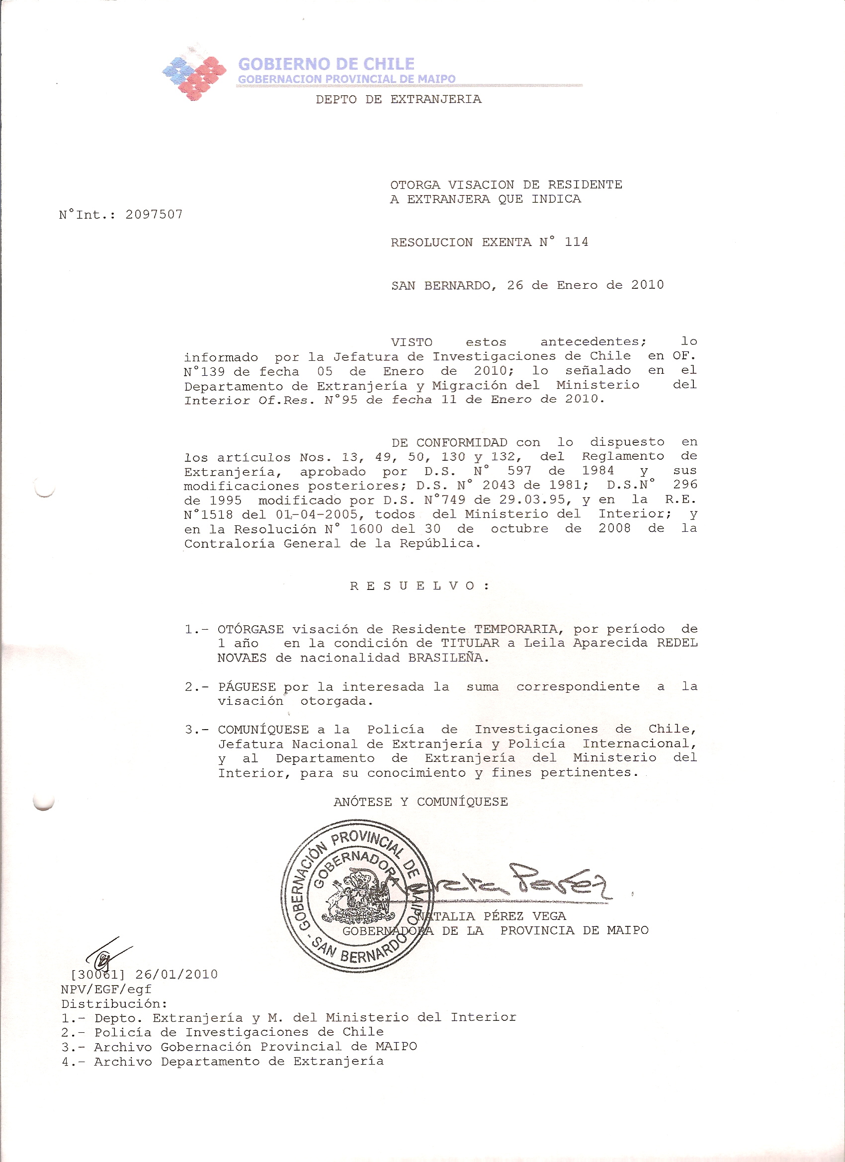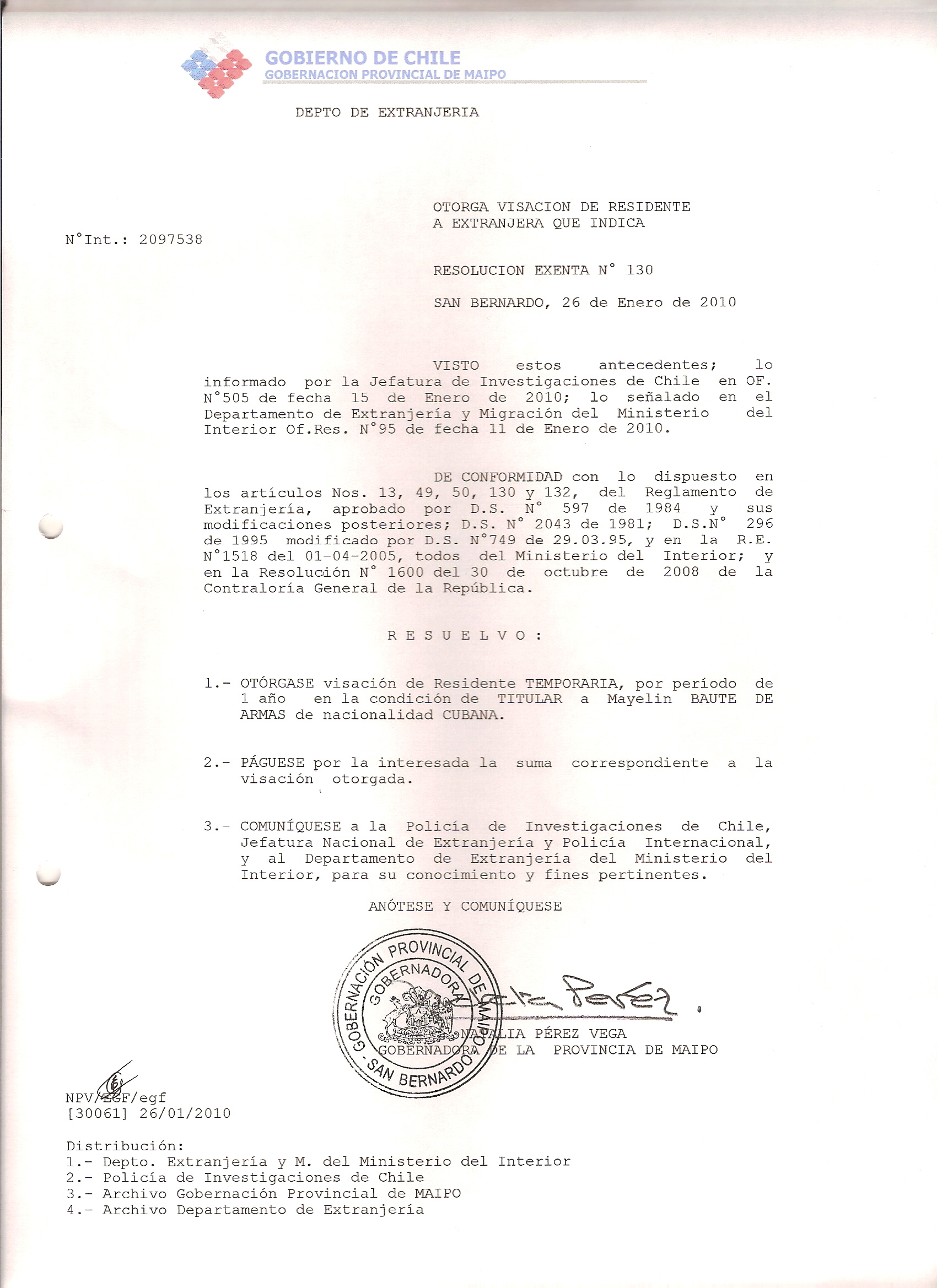 DEJA SIN EFECTO RESOLUCION VISA OTORGANDO OTRA VISA |