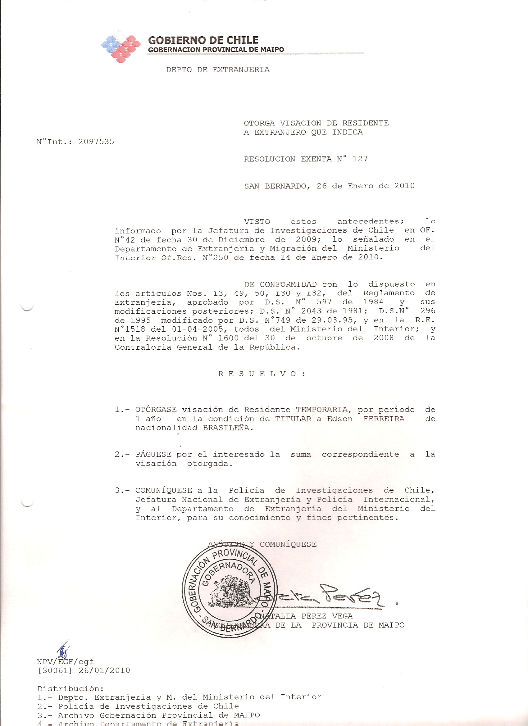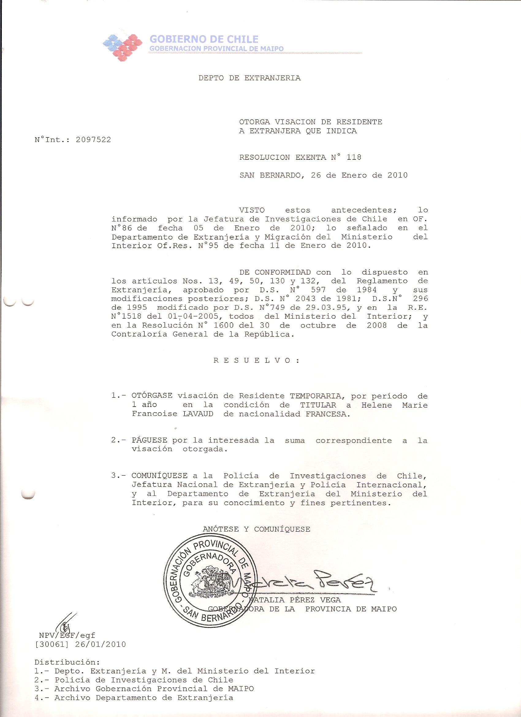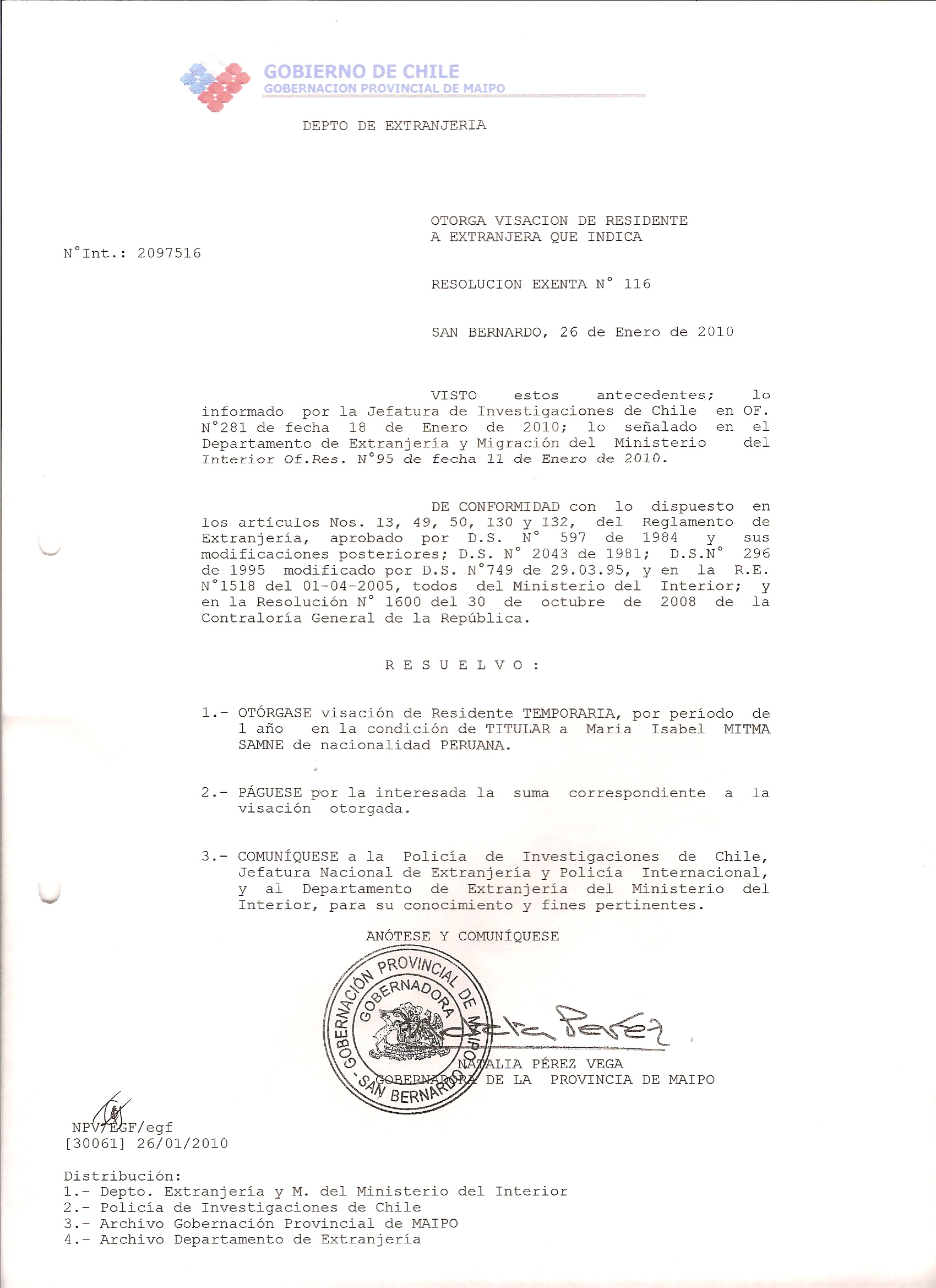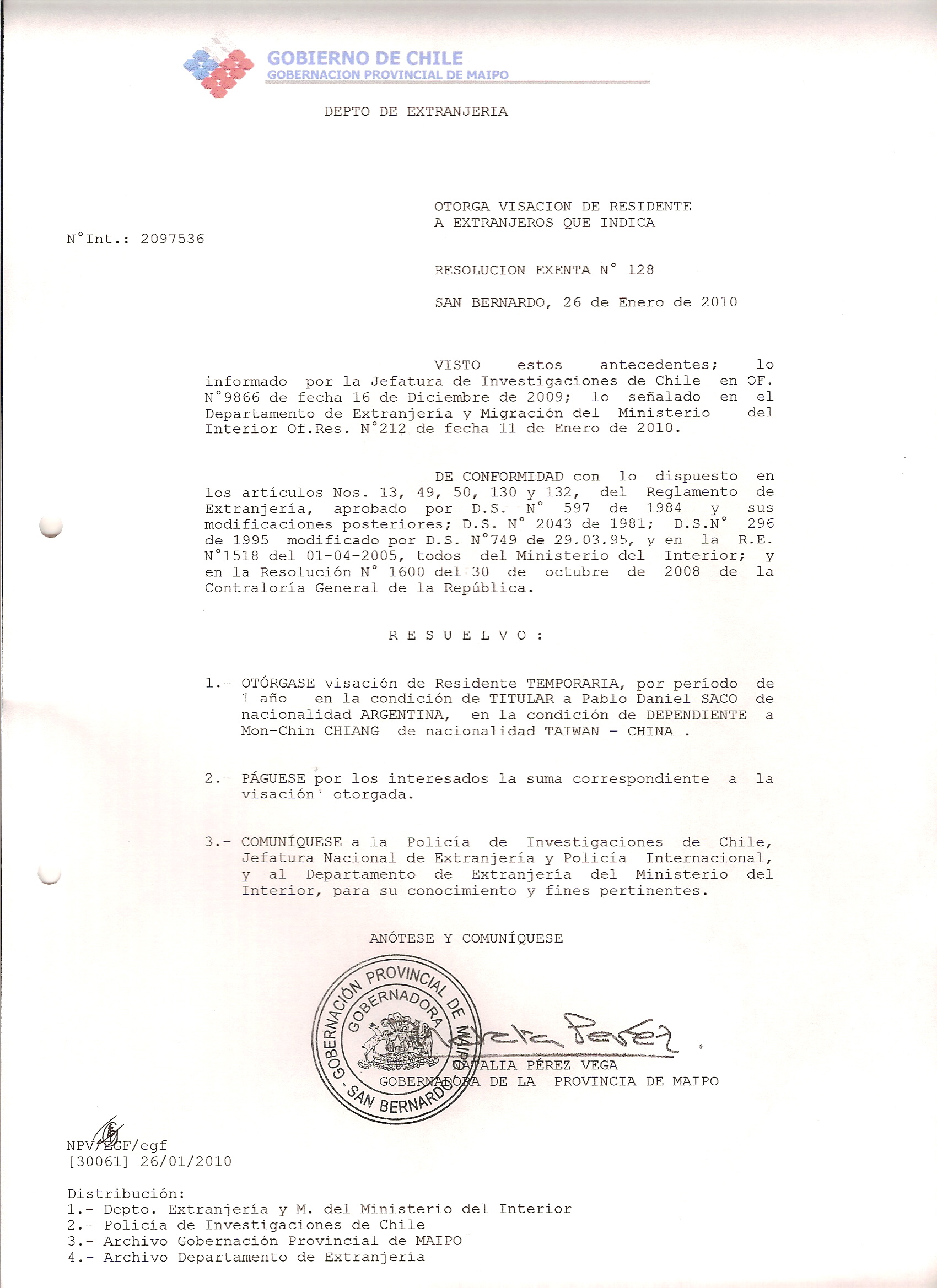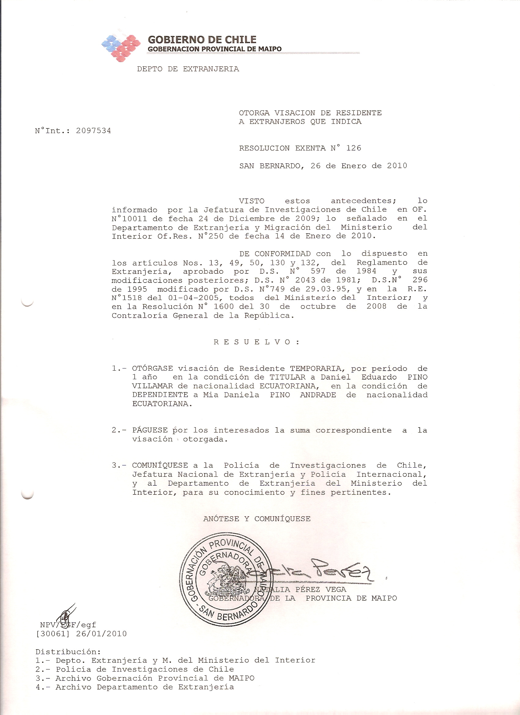 DEJA SIN EFECTO RESOLUCION VISA OTORGANDO OTRA VISA |