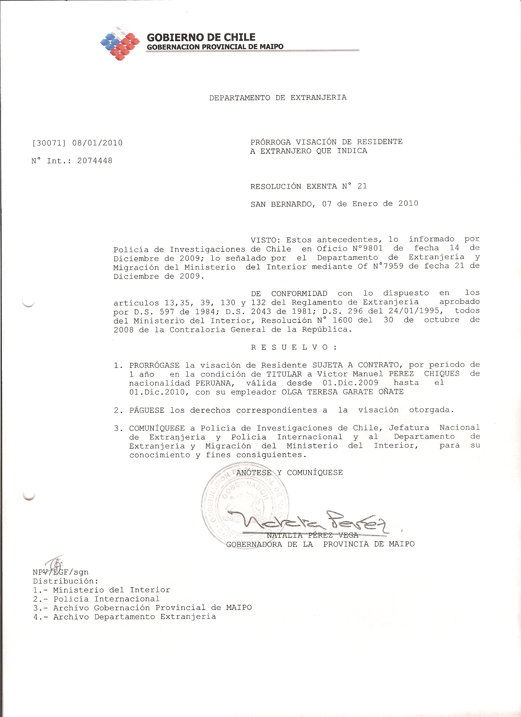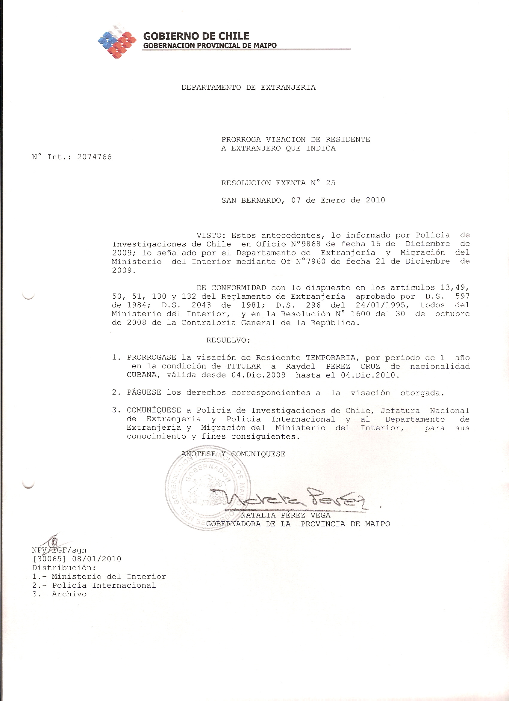 OTORGA PRORROGA VISA |