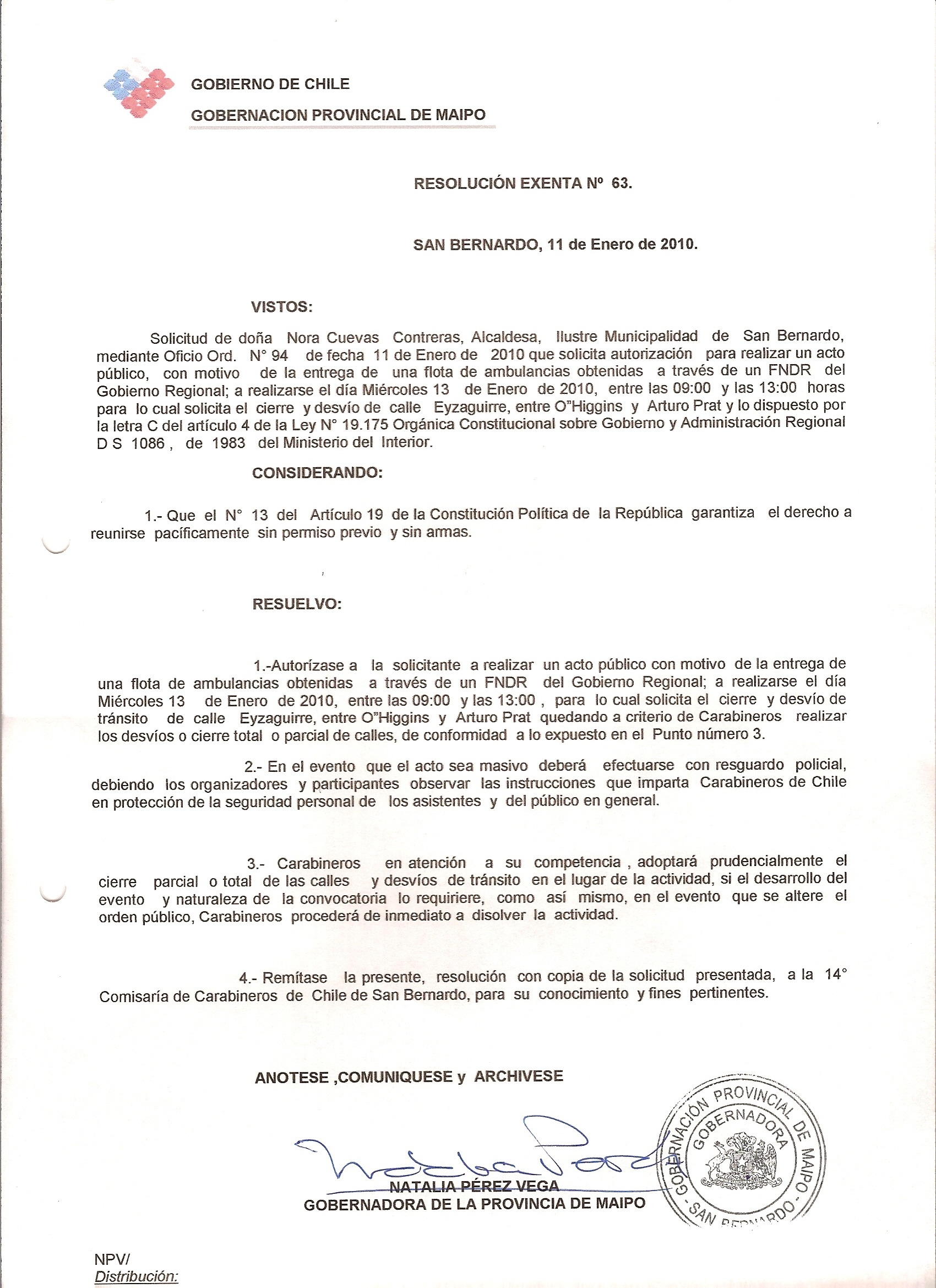 AUTORIZACION ACTO PUBLICO "ENTREGA DE FLOTA DE AMBULANCIAS" |