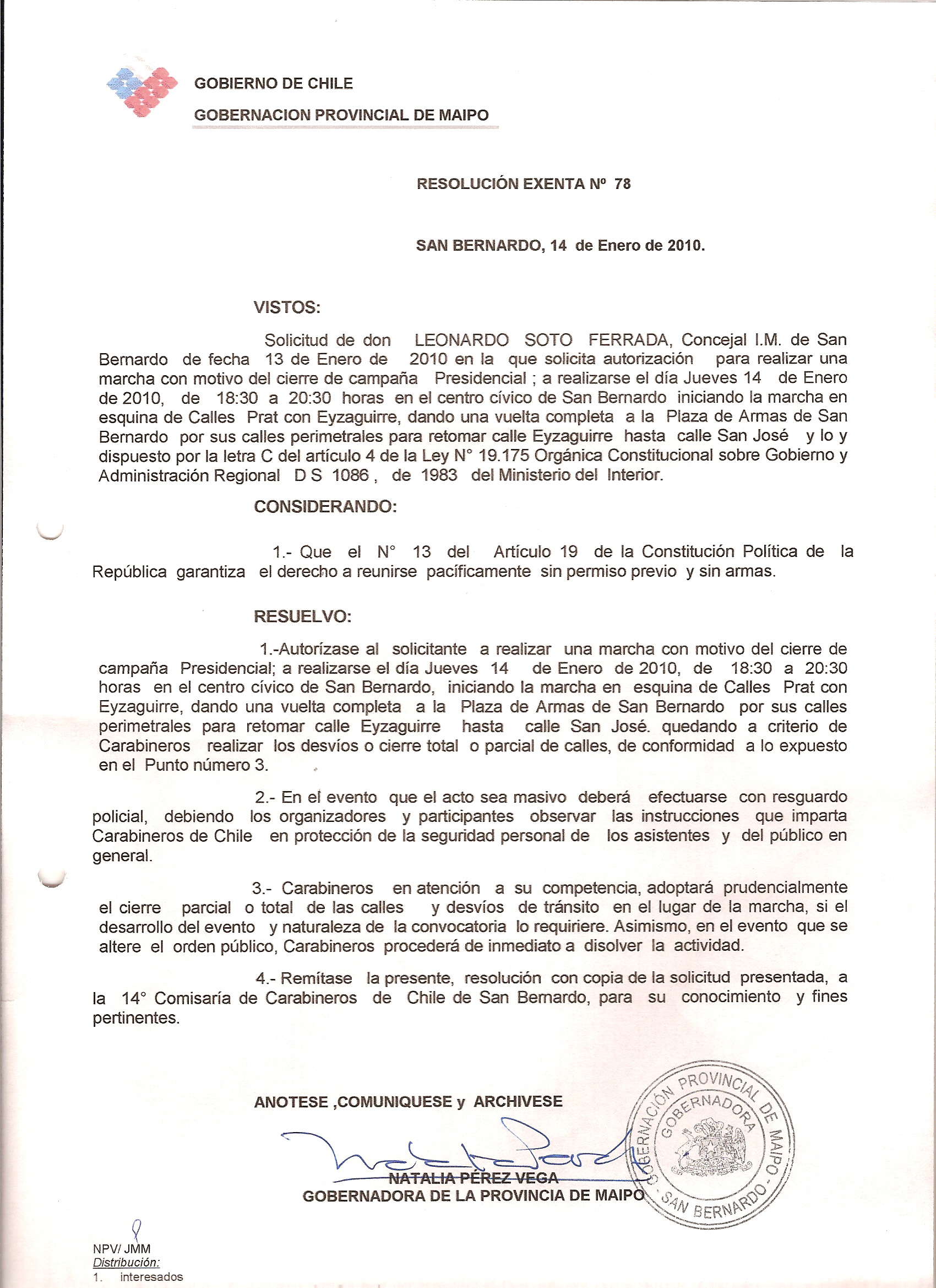 AUTORIZACION REALIZAR MARCHA CIERRE DE CAMPAÑA 2009 |