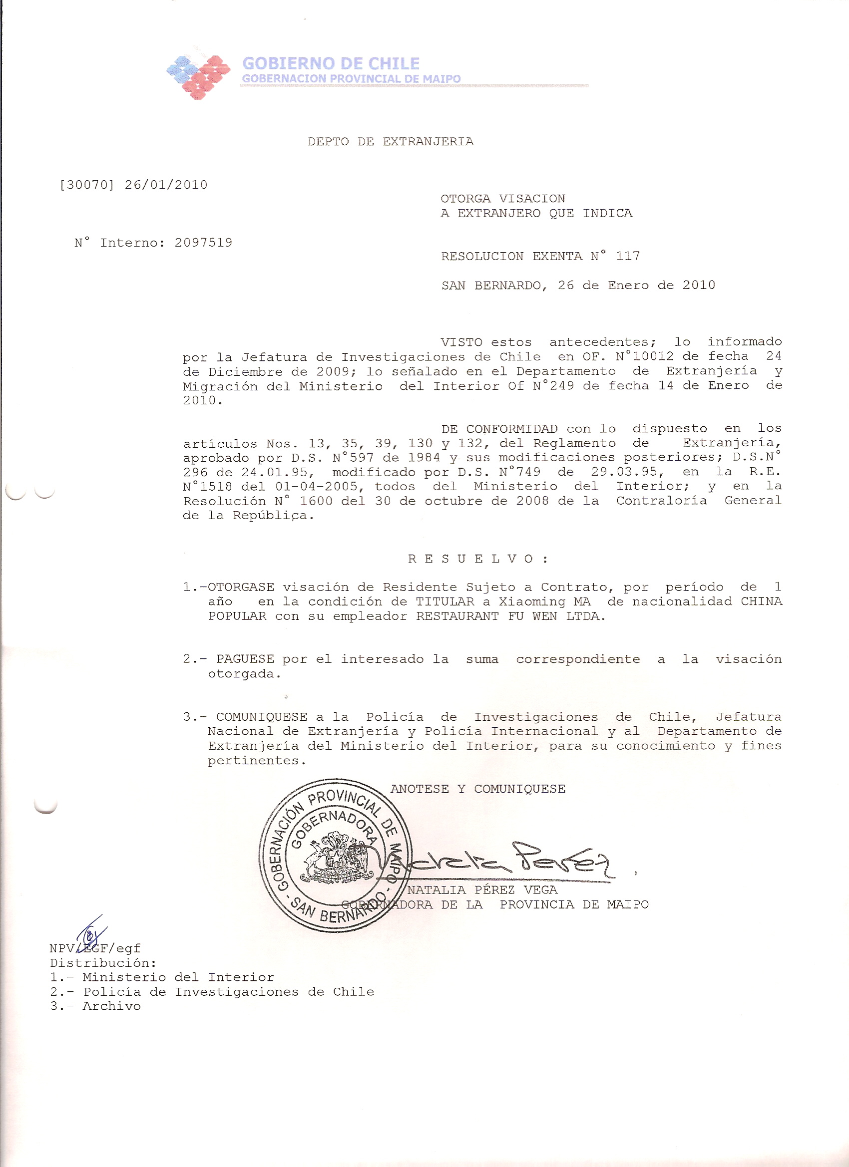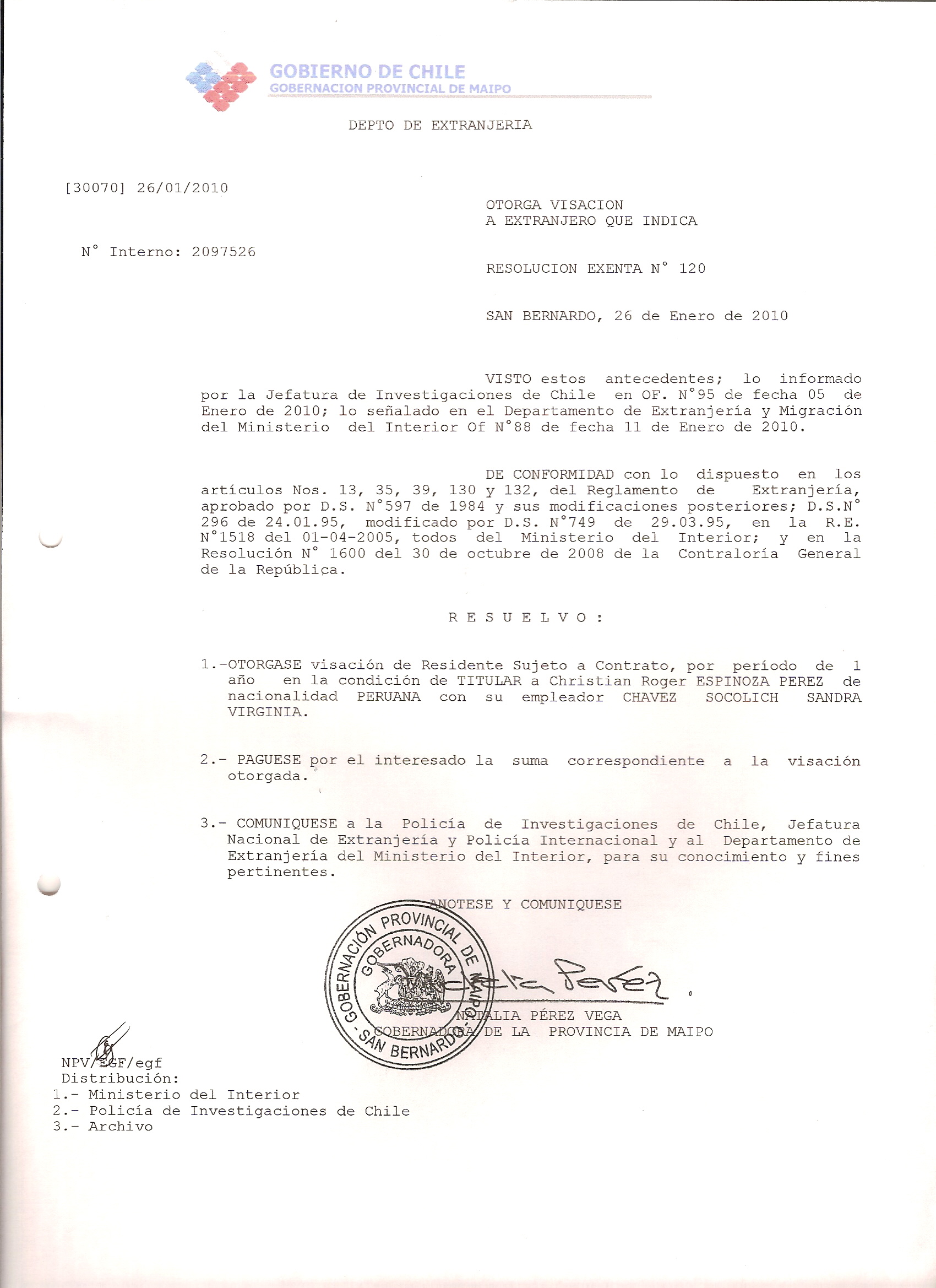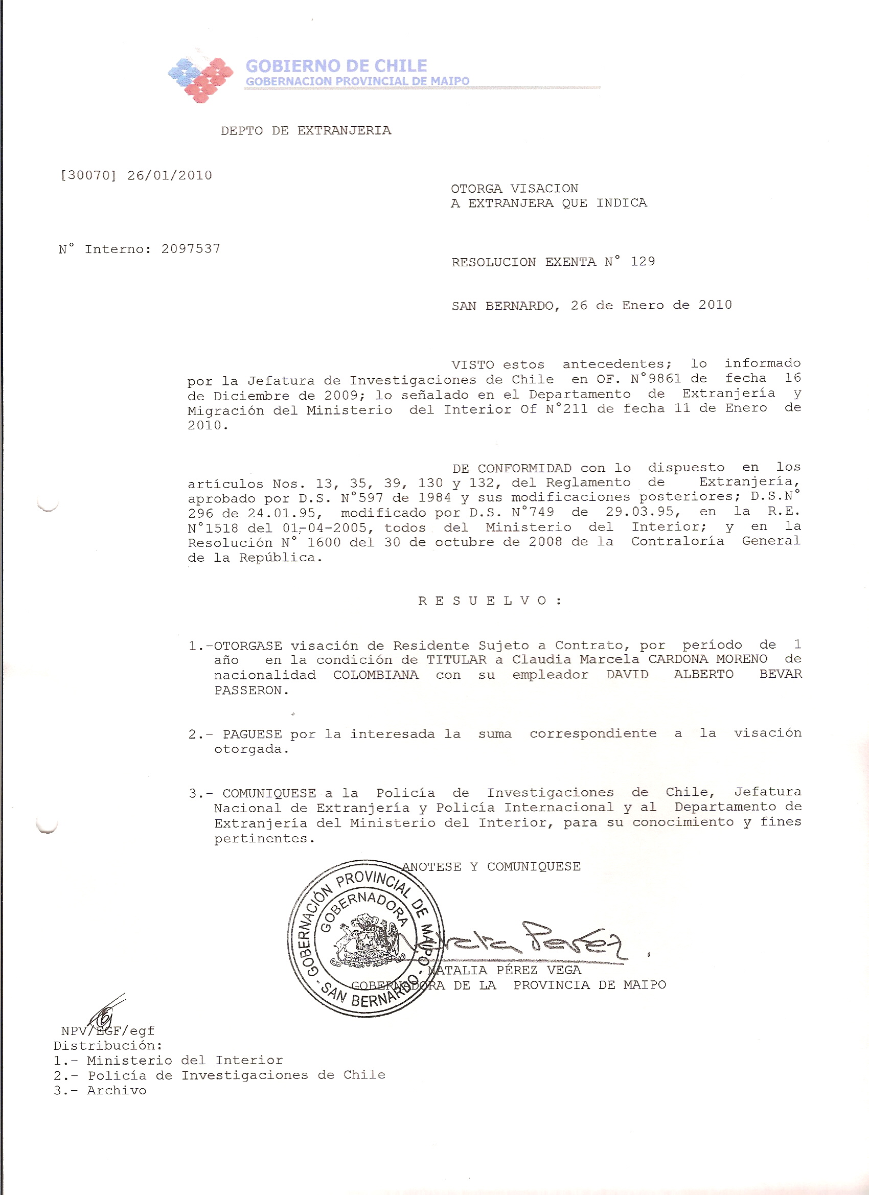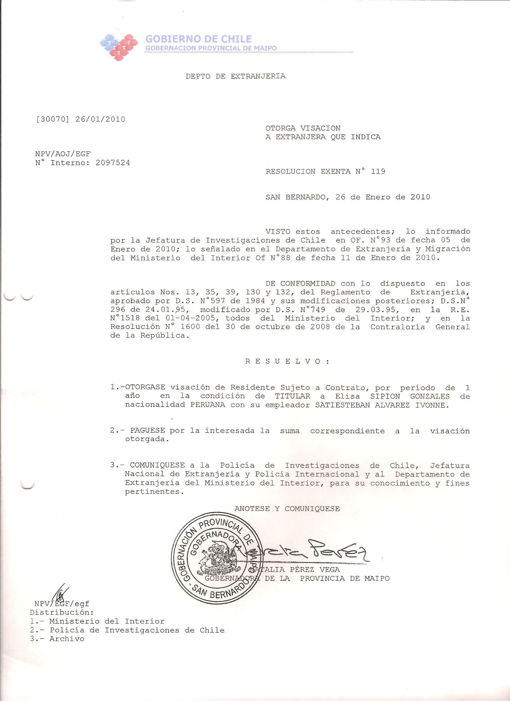 DEJA SIN EFECTO VISA Y OTORGA OTRA VISA |