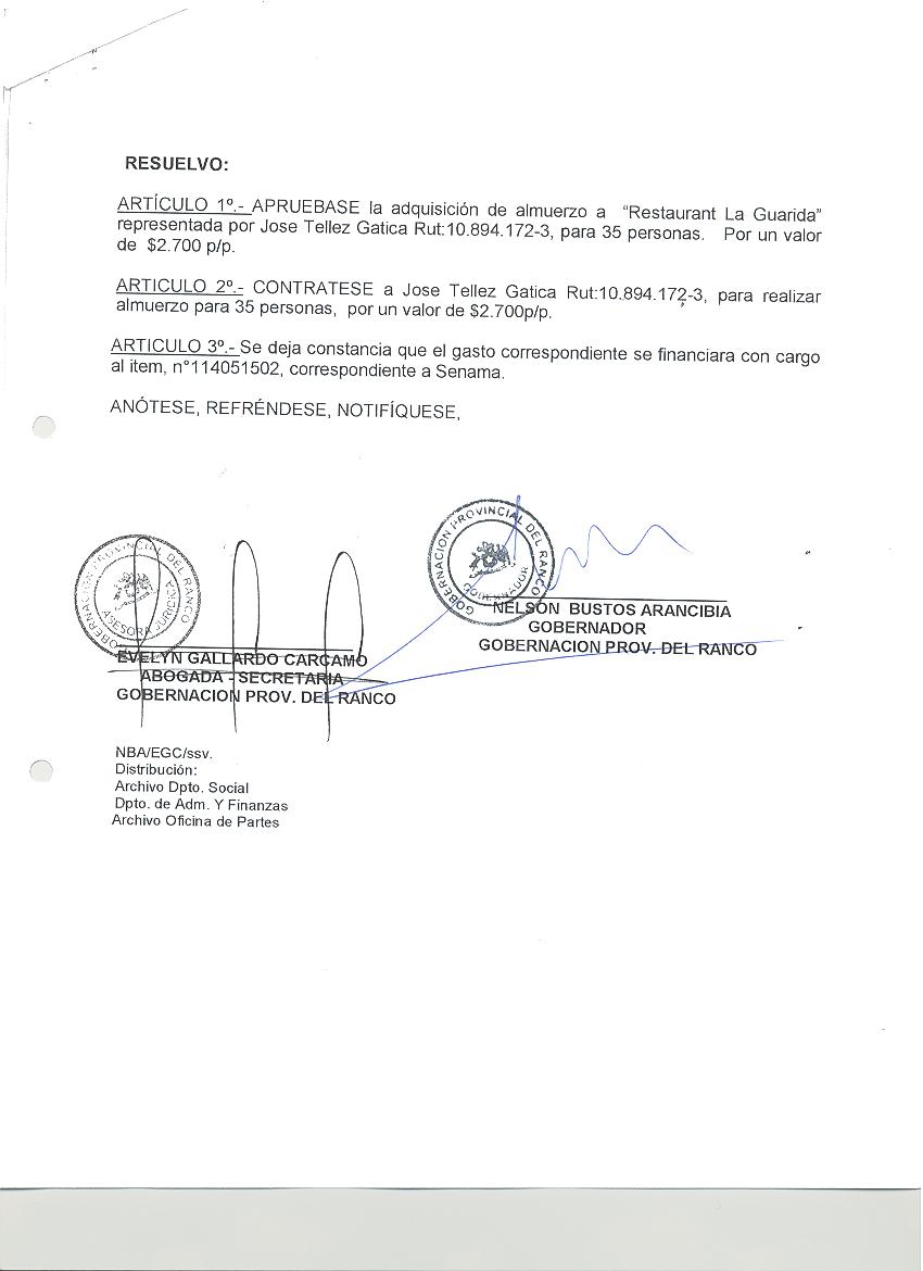 | 4 | 21/04/2009 | Resolución Exenta 373 | Servicio de almuerzo encuentro Adulto Mayor Futrono | 22/04/2009 | 22/04/2009 | Pesos | 94500 | José Tellez Gatica | Tellez | Gatica | José | 10.894.172-3 | José Tellez Gatica | Ver enlace | - | null |