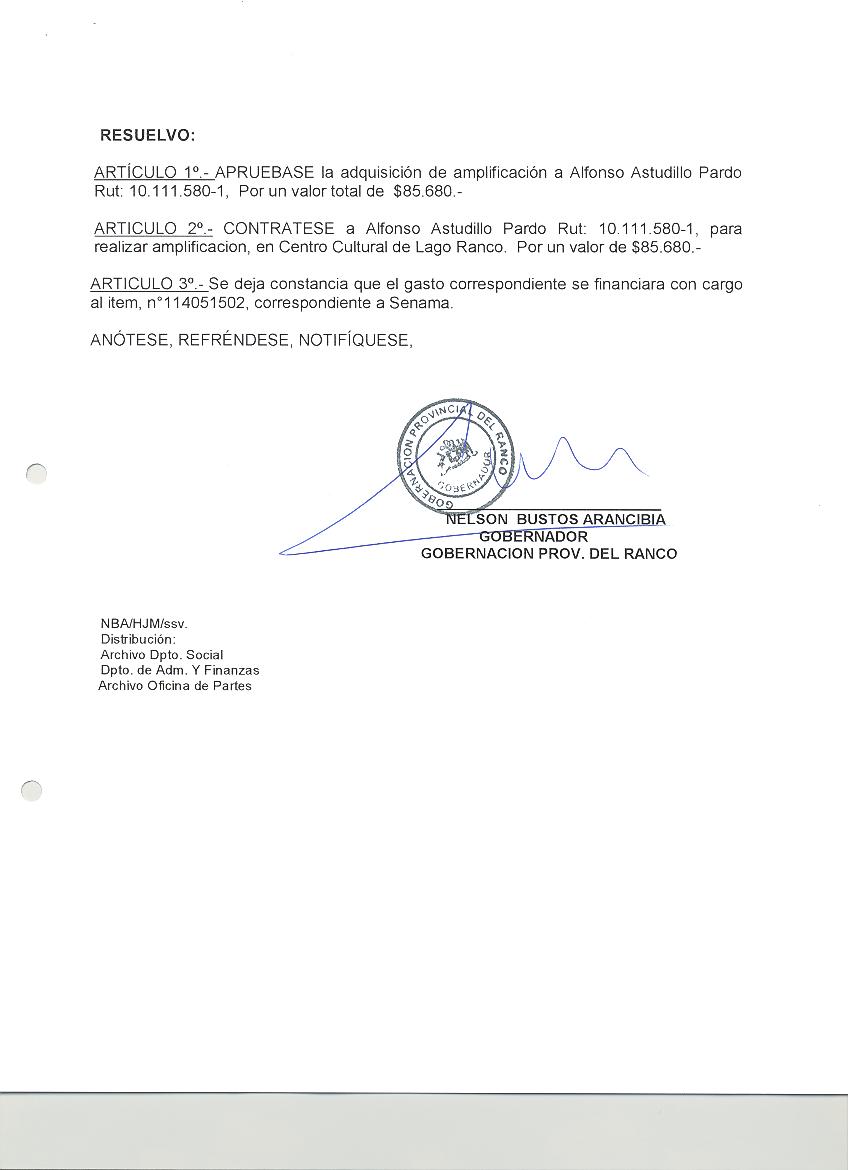 | 8 | 24/04/2009 | Resolución Exenta 388 | Contratación Amplificación Jornada Senama Gobernación | 27/04/2009 | 27/04/2009 | Pesos | 85680 | Alfonso Astudillo Pardo | Astudillo | Pardo | Alfonso | 10.111.580-1 | Alfonso Astudillo | Ver enlace | - | null |