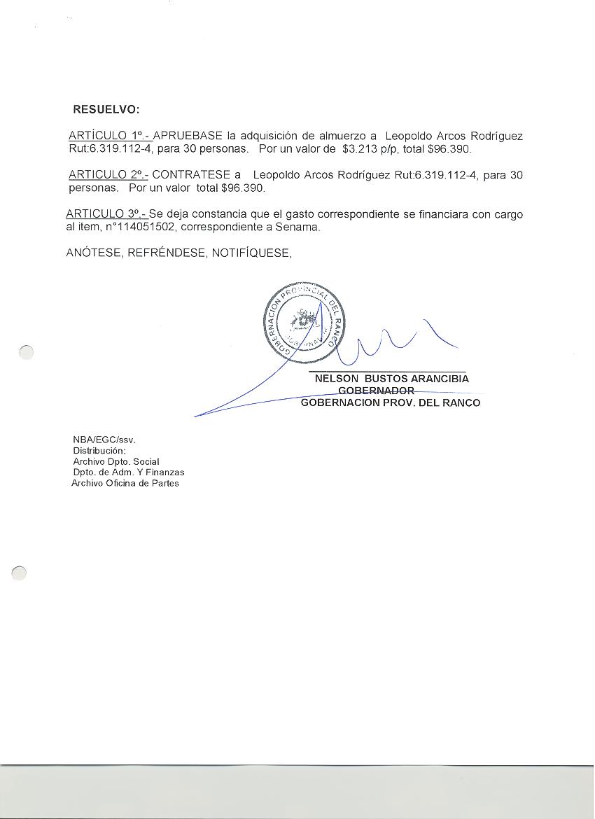 | 10 | 24/04/2009 | Resolución Exenta 391 | Servicio de almuerzo encuentro Adulto Mayor Lago Ranco | 27/04/2009 | 27/04/2009 | Pesos | 96390 | Leopoldo Arcos Rodríguez | Arcos | Rodríguez | Leopoldo | 6.319.112-4 | Leopoldo Arcos | Ver enlace | - | null |