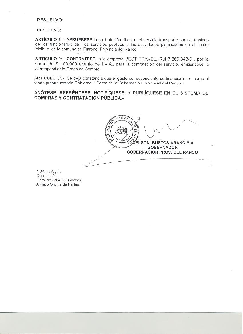 | 11 | 24/04/2009 | Resolución Exenta 392 | Servicio de Transporte Gobierno + Cerca | 24/04/2009 | 27/04/2009 | Pesos | 100000 | Best Travel | Avilés | Guarda | Mónica | 7.869.848-9 | Mónica Avilés | Ver enlace | - | null |