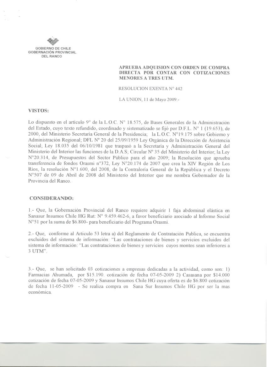 | 20 | 11/05/2009 | Resolución Exenta N° 442 | Adquisición de 1 faja abdominal elástica | 11/05/2009 | 11/05/2009 | Pesos | 6800 | No | Henríquez | Carvajal | Erwin Armando | 9.459.462-6 | No | Ver enlace | - | null |