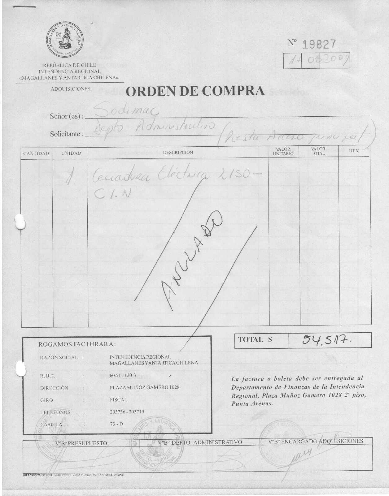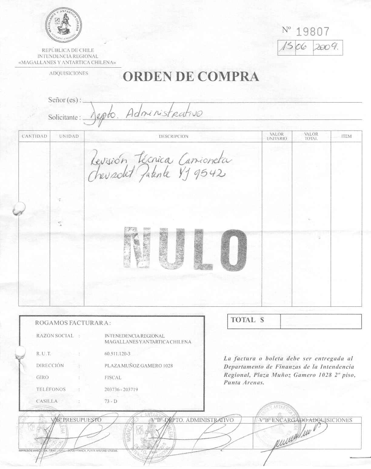 | 51 | 15/06/2009 | Orden de Compra N° 19807 | ANULADA | 15/06/2009 | 15/06/2009 | Pesos | 0 | . | Ver enlace | - | null | |||||