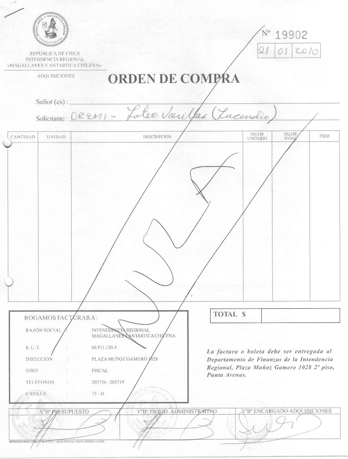 | 11 | 20/01/2010 | Orden de compra N° 19897 | ANULADA | 20/01/2010 | 20/01/2010 | pesos | 0 | . | Ver enlace | |||||