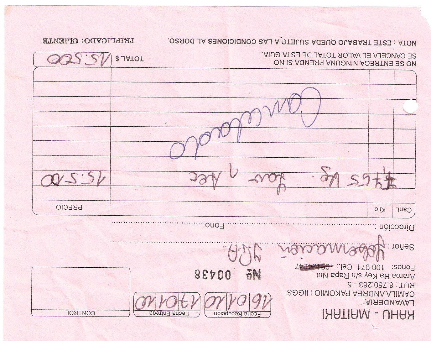 | 2 | 17/01/2010 | Egreso N° 016 | Servicio de Aseo ( Manteles) | 03/02/2010 | 03/02/2010 | pesos | 15.500 | Higgs | Pakomio | Camila | 8.750.263-5 | Ver enlace | ||