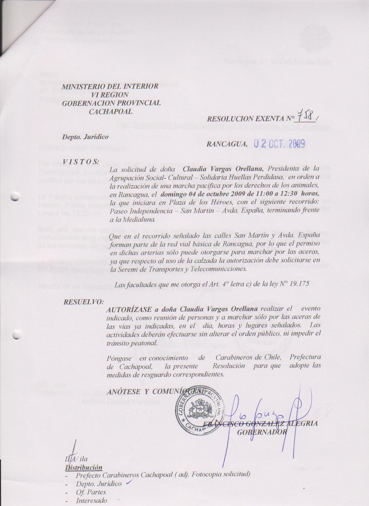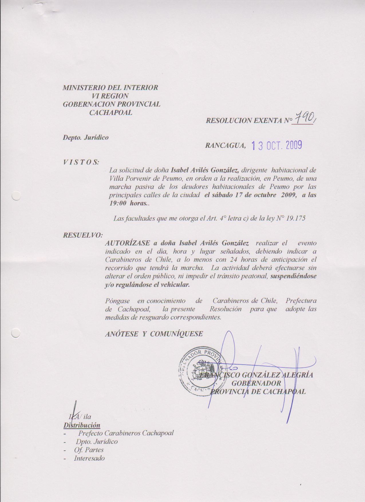 AUTORIZA MARCHA EN LA COMUNA DE RANCAGUA |