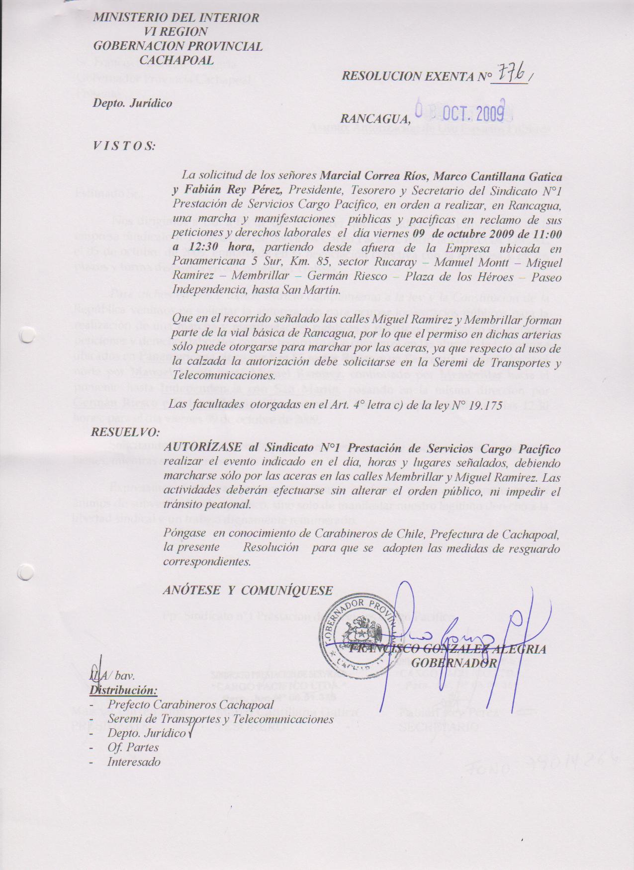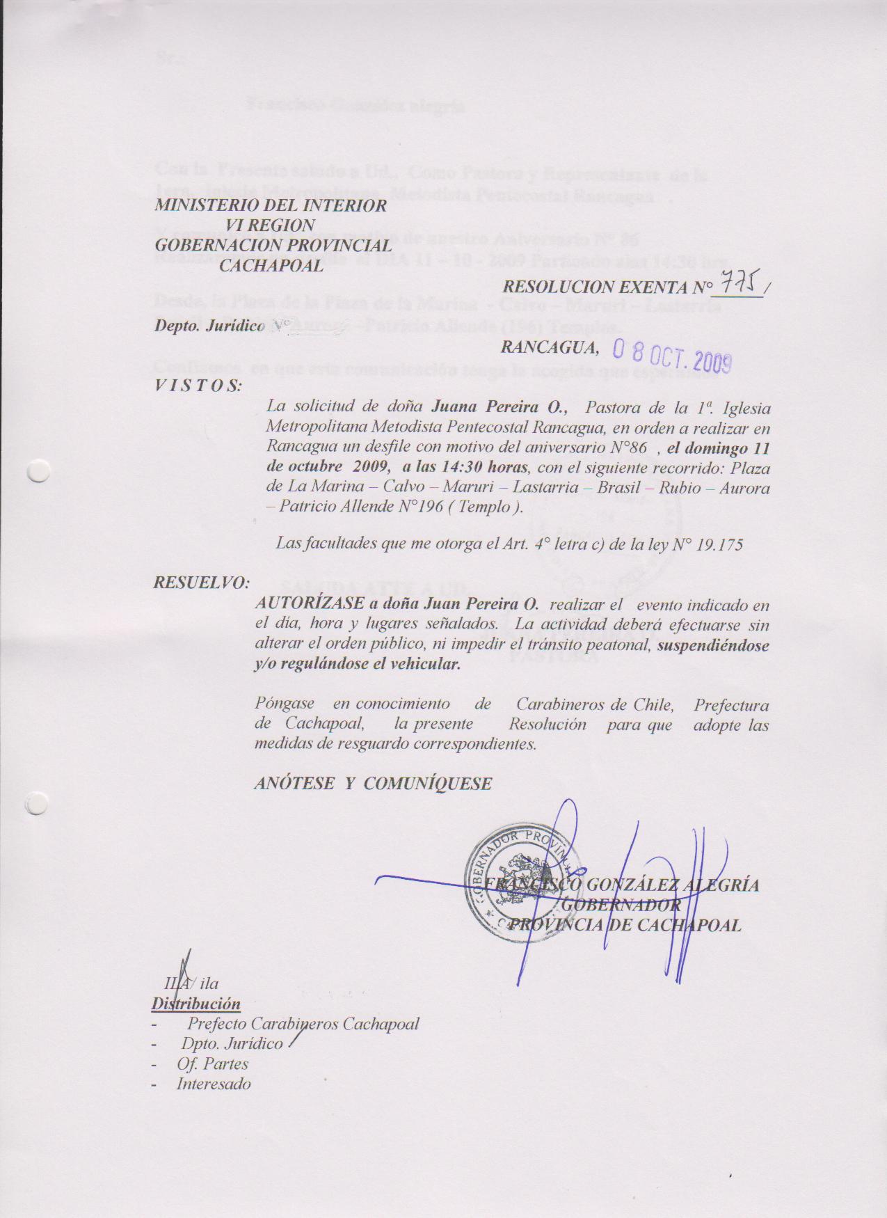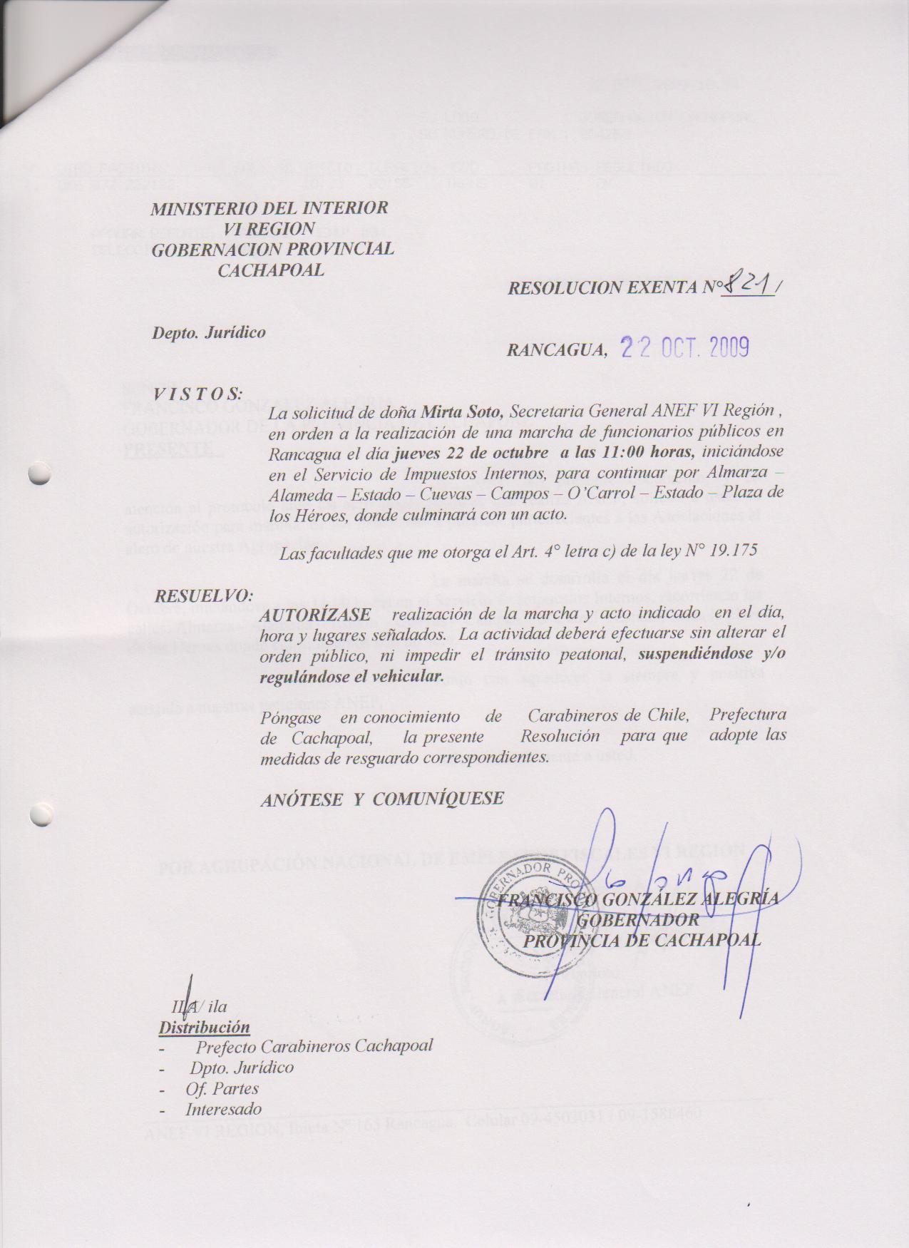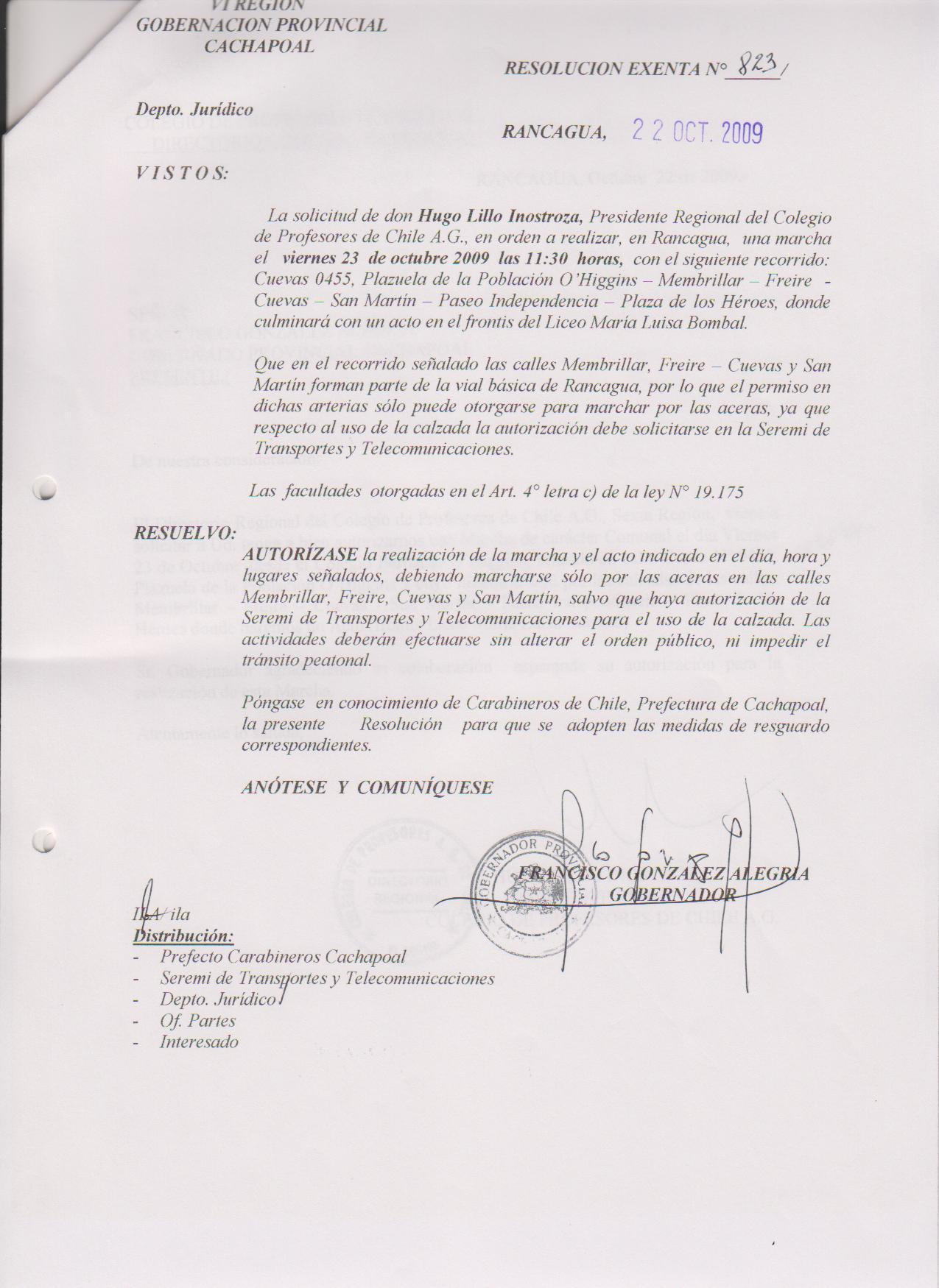 AUTORIZA MARCHAS EN LAS COMUNA DE RANCAGUA |