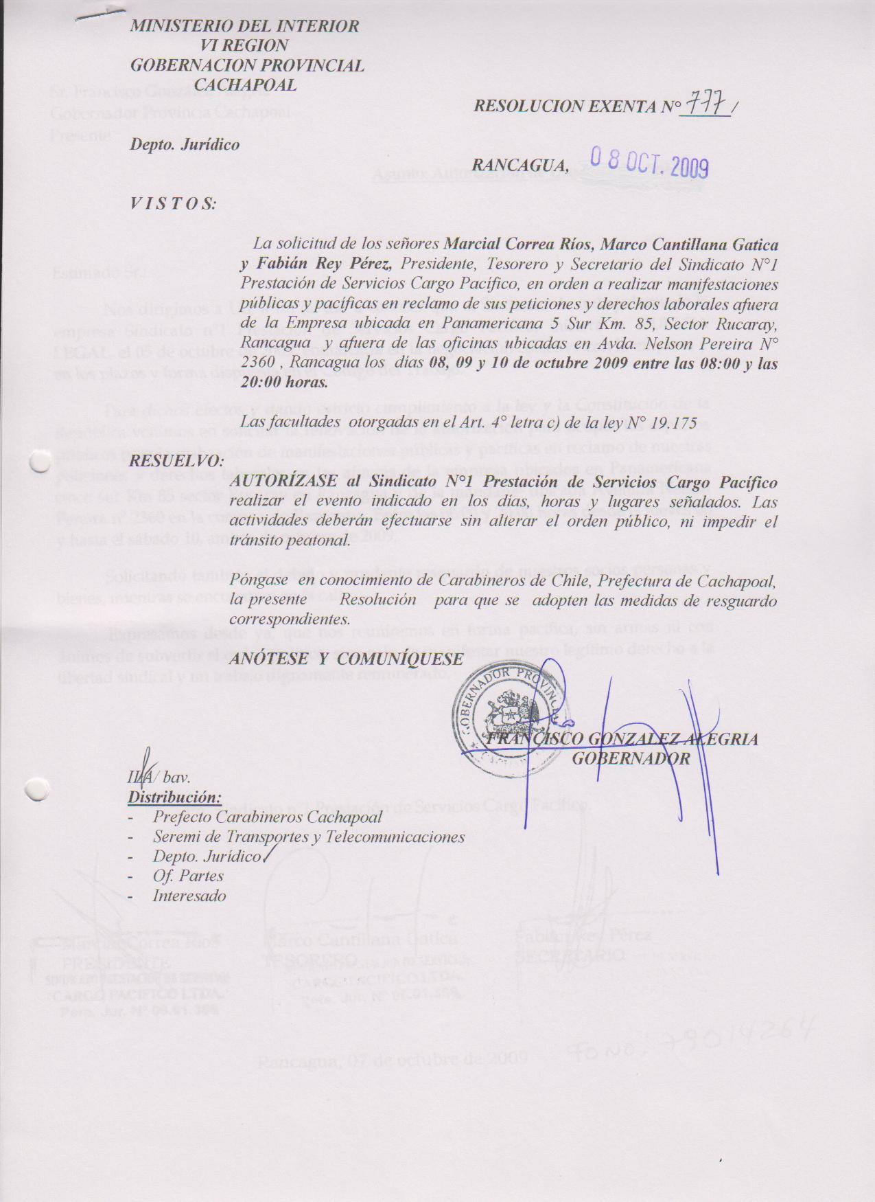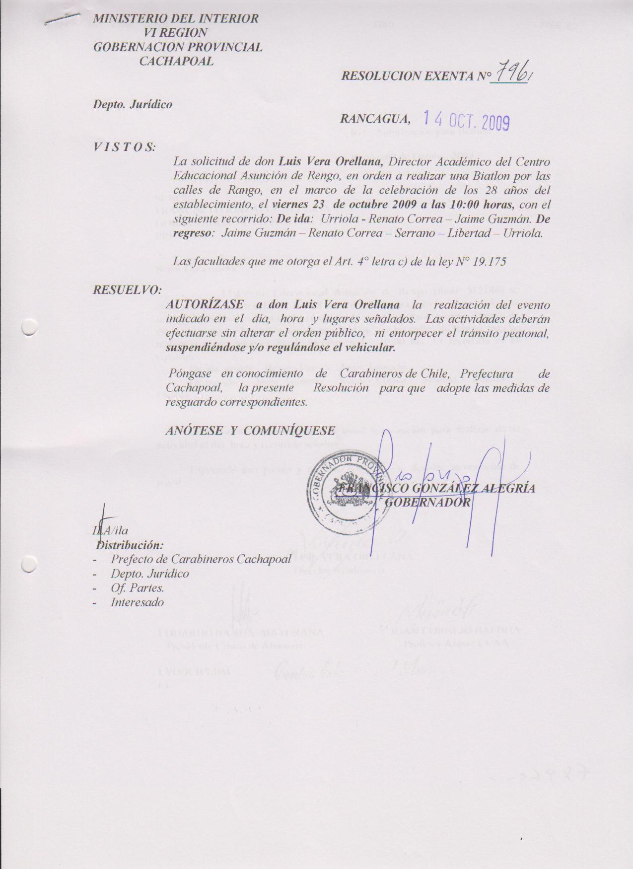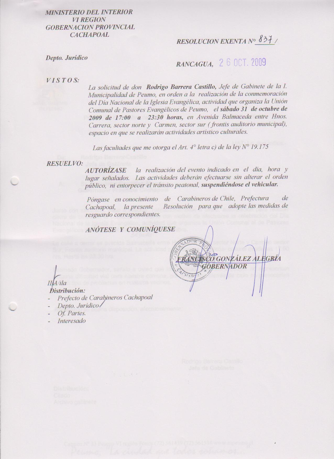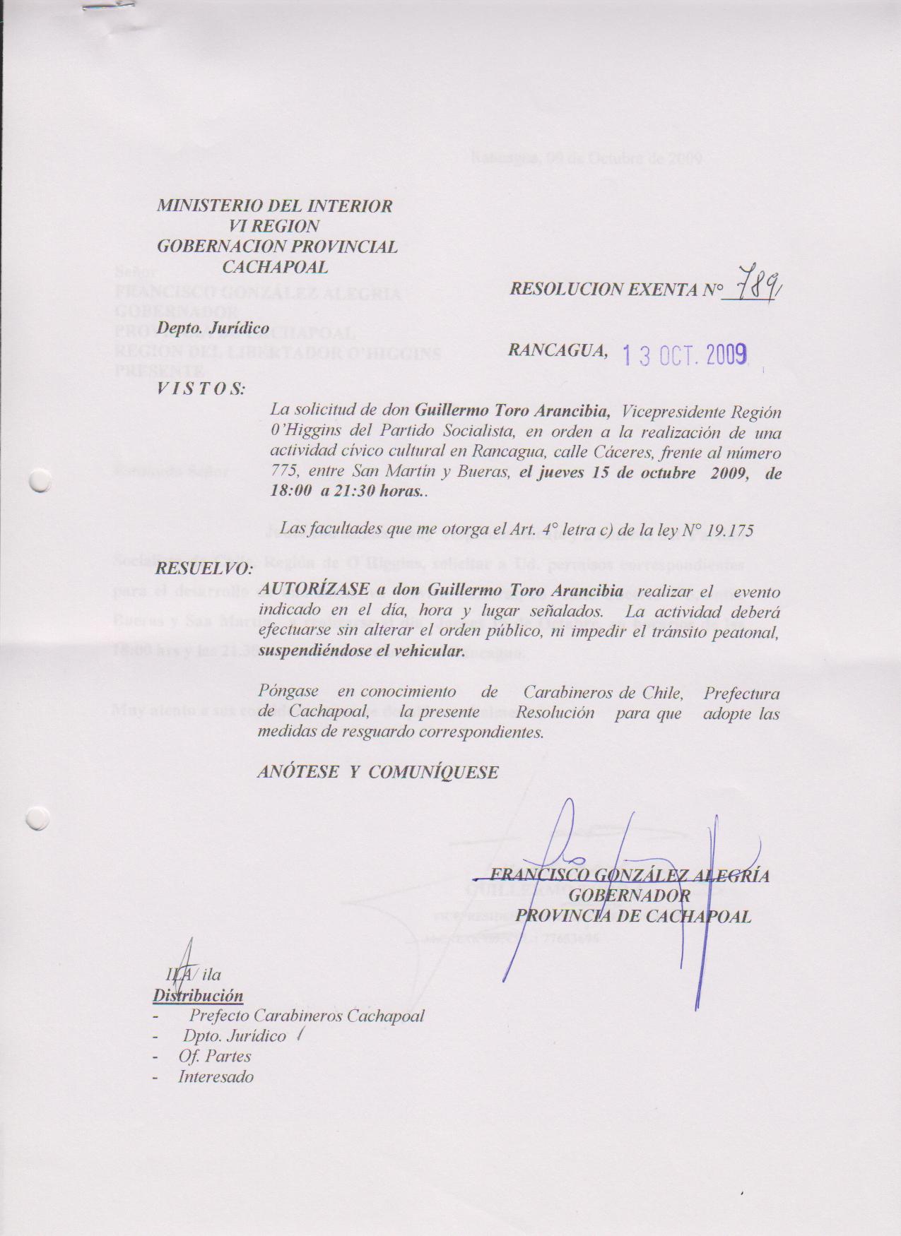 AUTORIZA MARCHAS EN LAS COMUNA DE RANCAGUA |