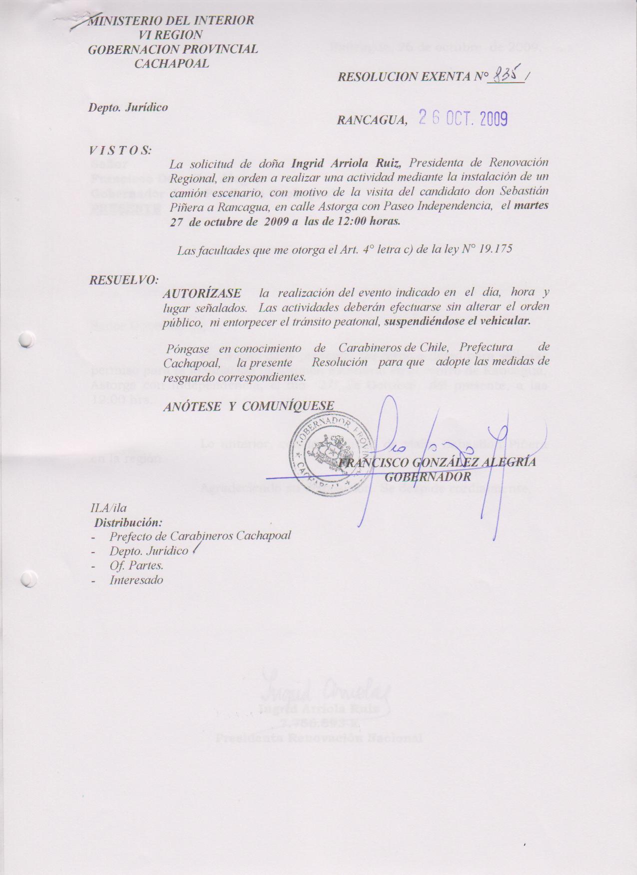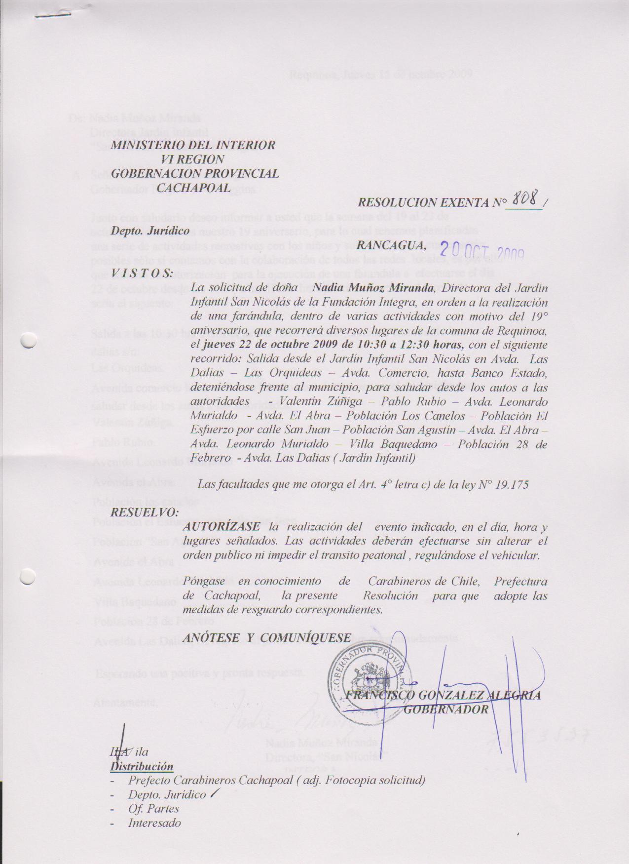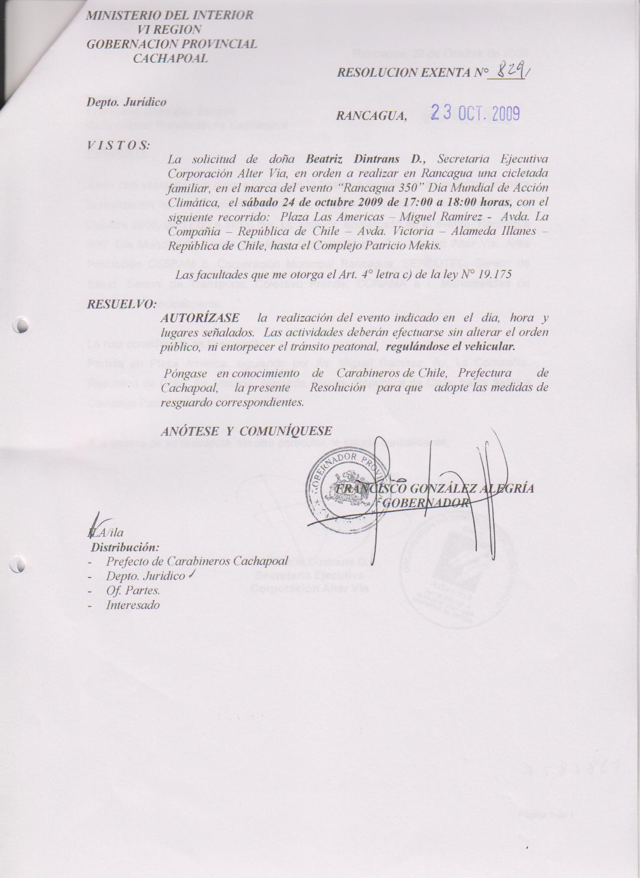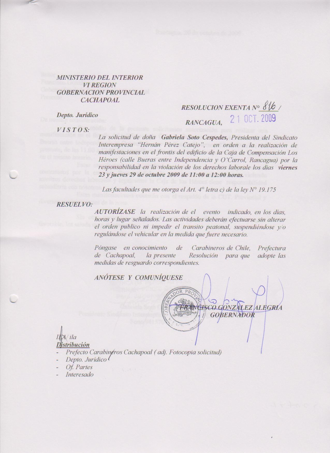 AUTORIZA MARCHAS EN LAS COMUNA DE RANCAGUA |