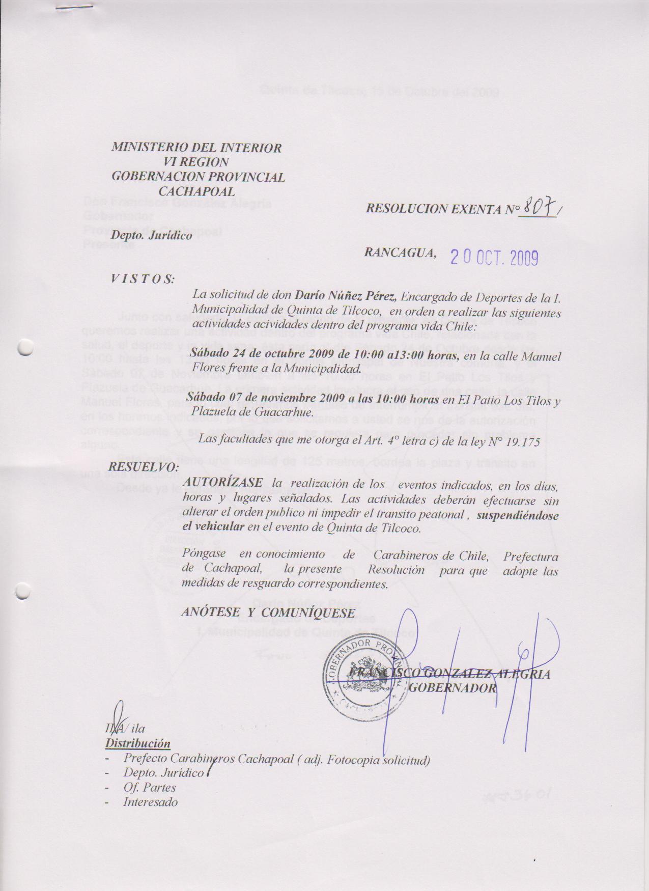AUTOIRIZA ACTIVIDADES DEL PROGRAMA VIDA CHILE EN LA COMUNA DE QUINTA DE TILCOCO |