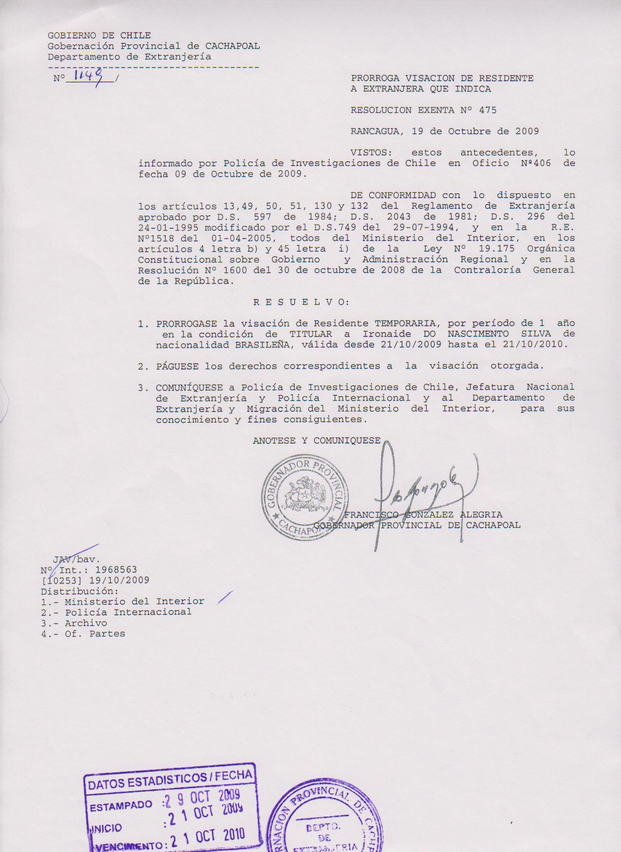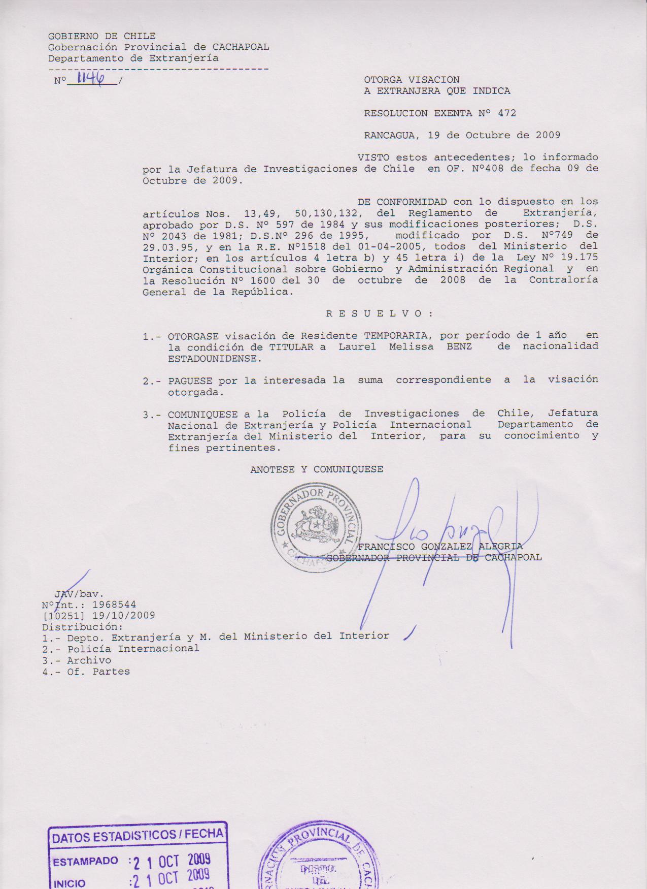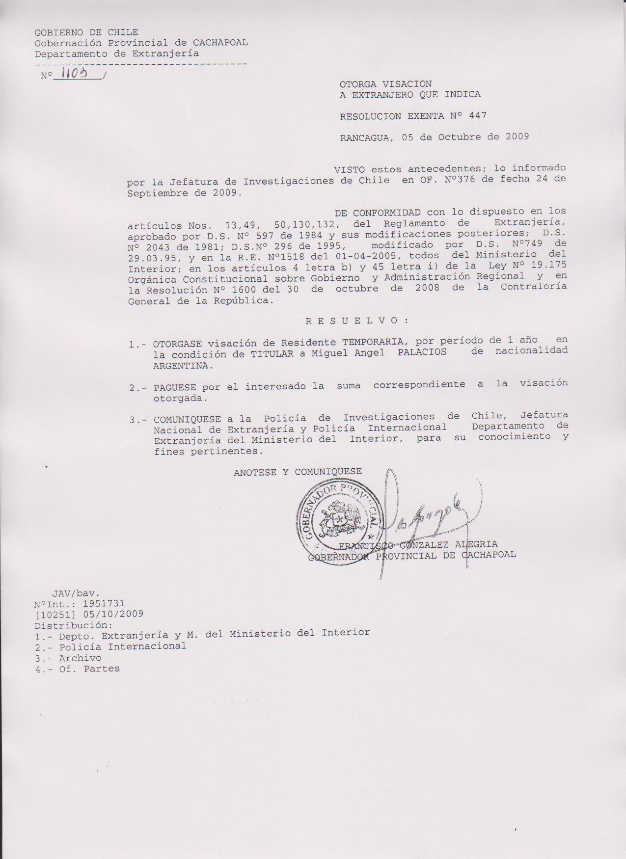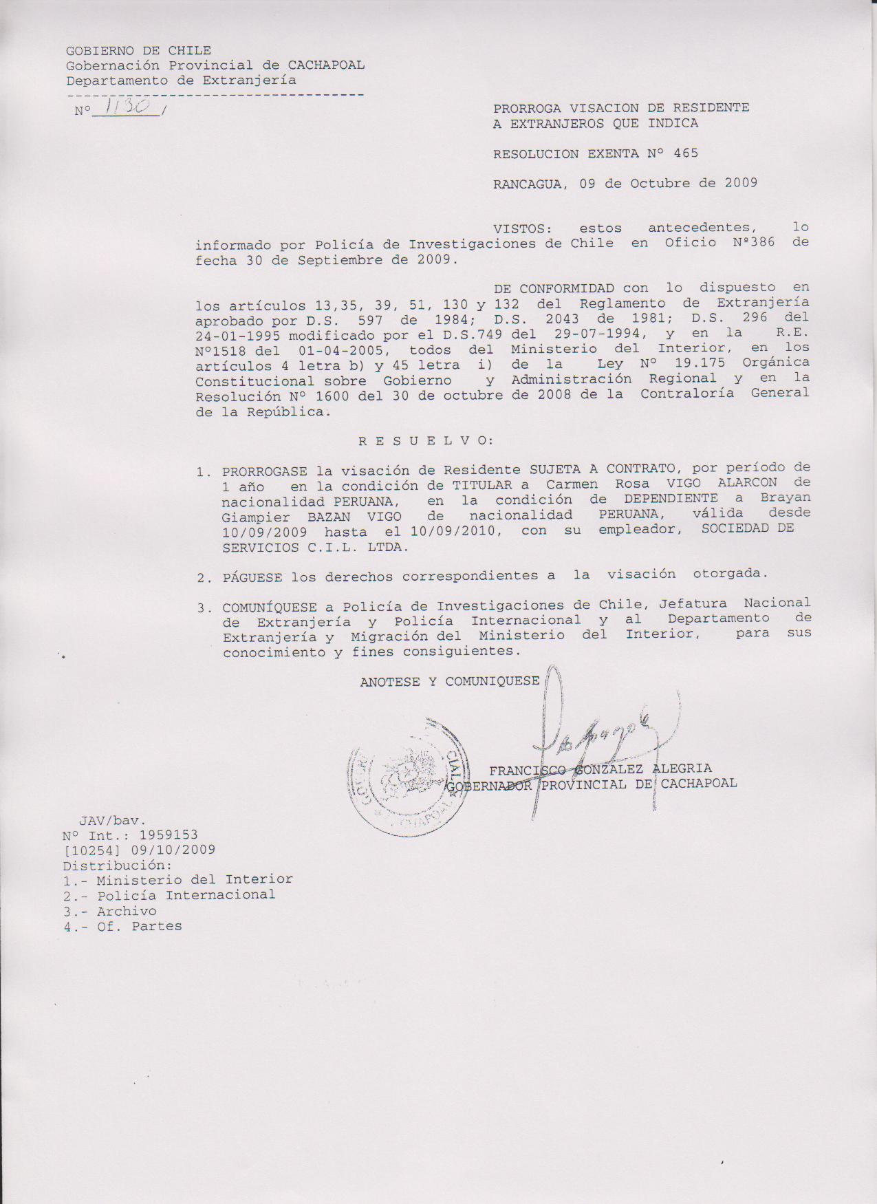 OTORGA PRORROGA VISA |