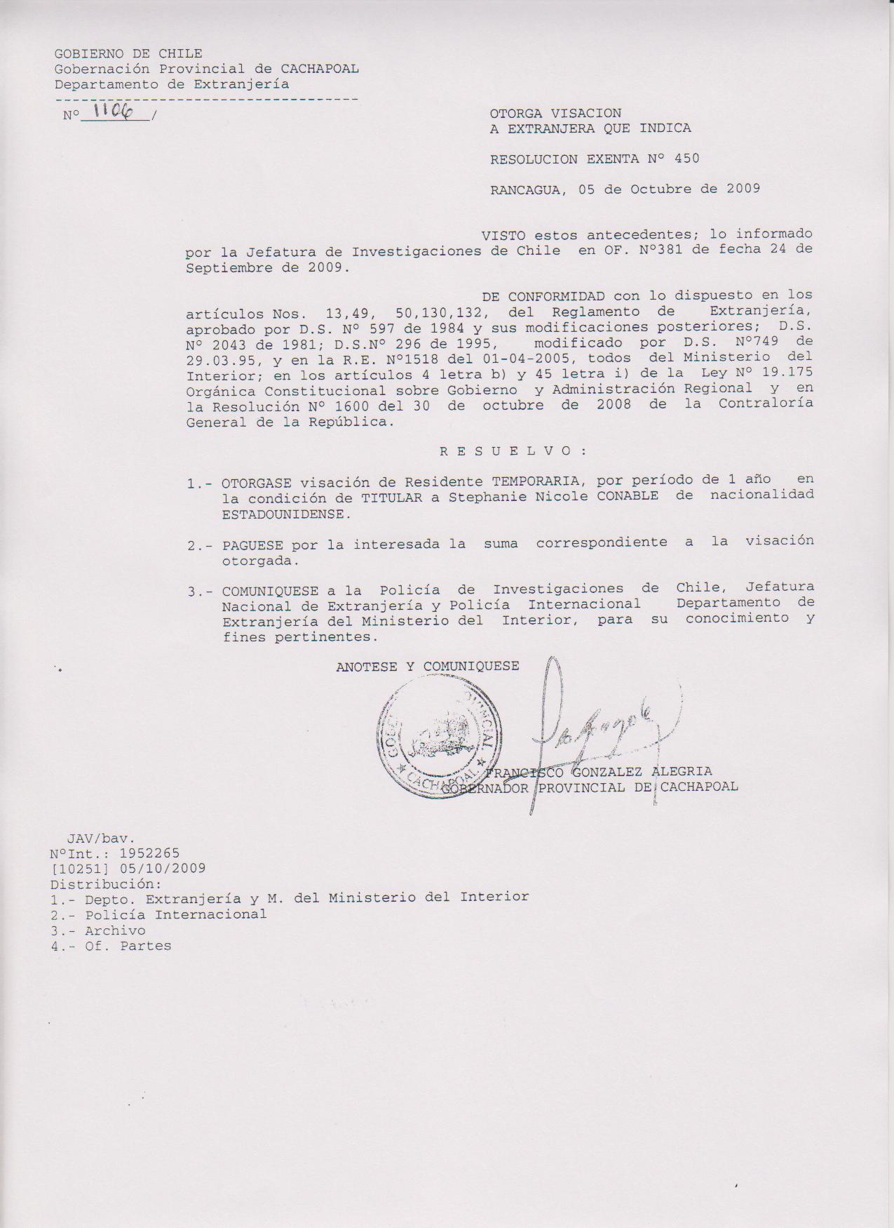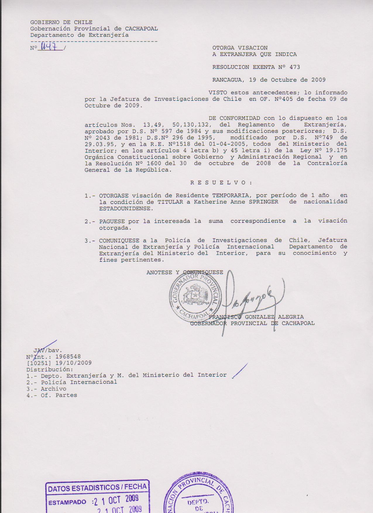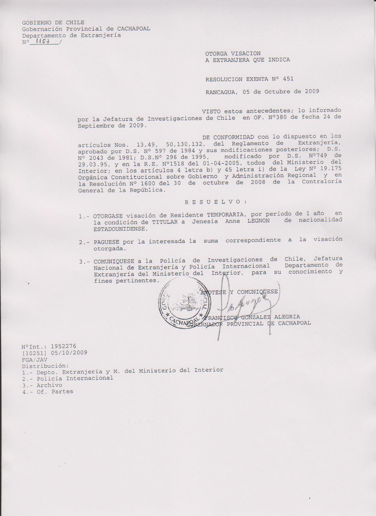 OTORGA PRORROGA VISA |