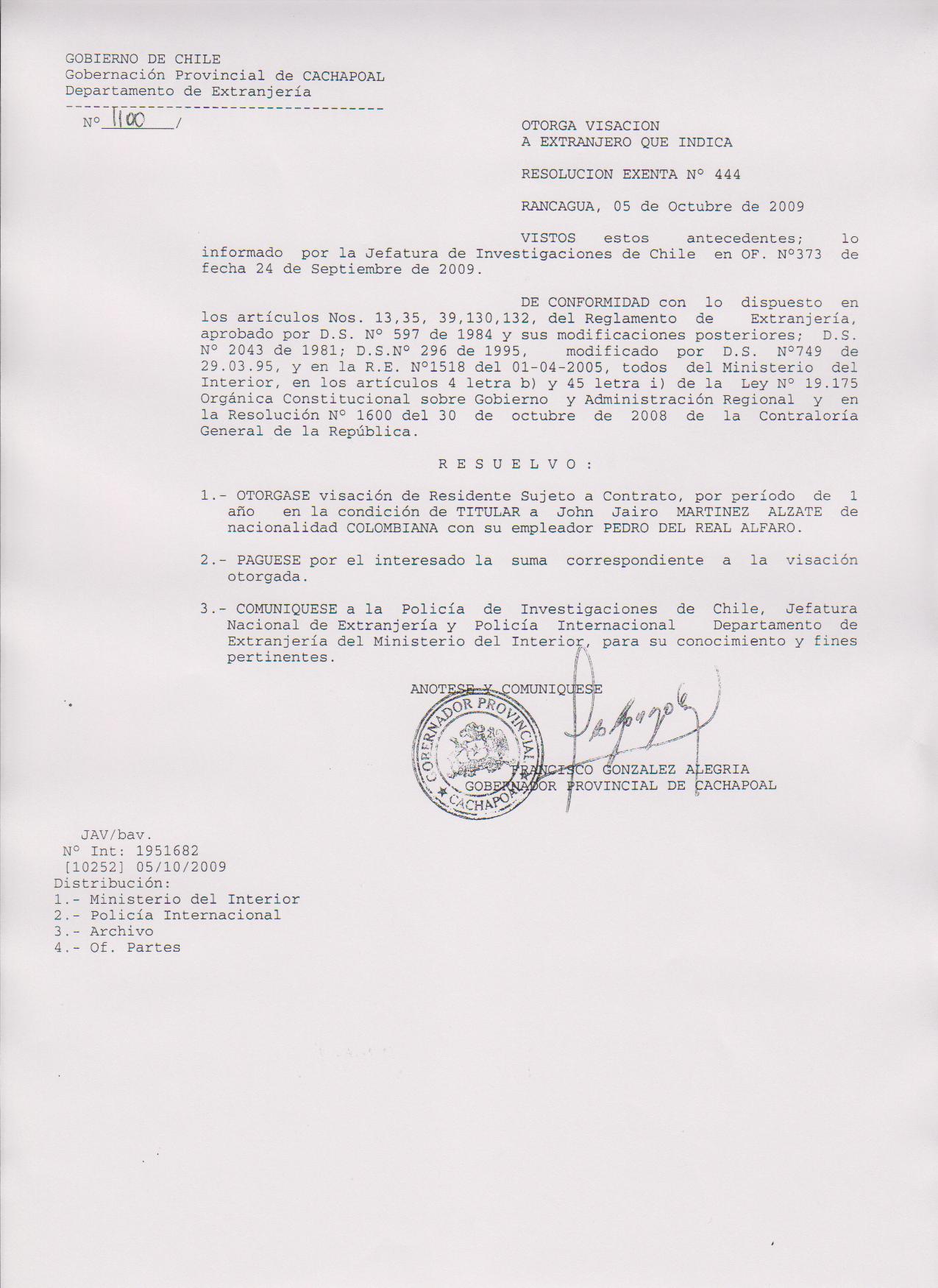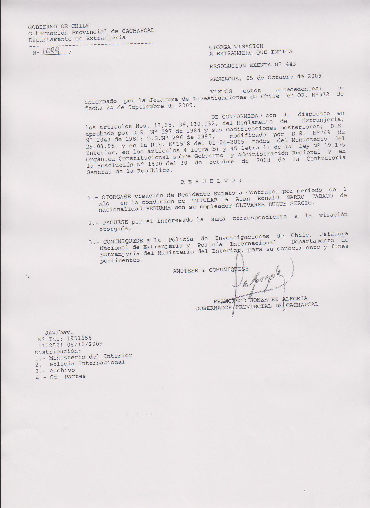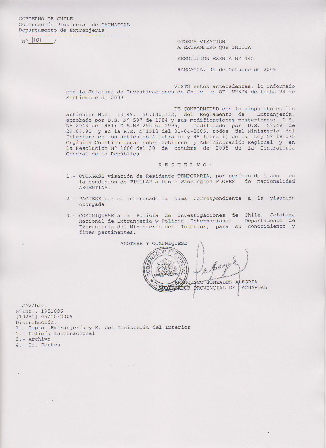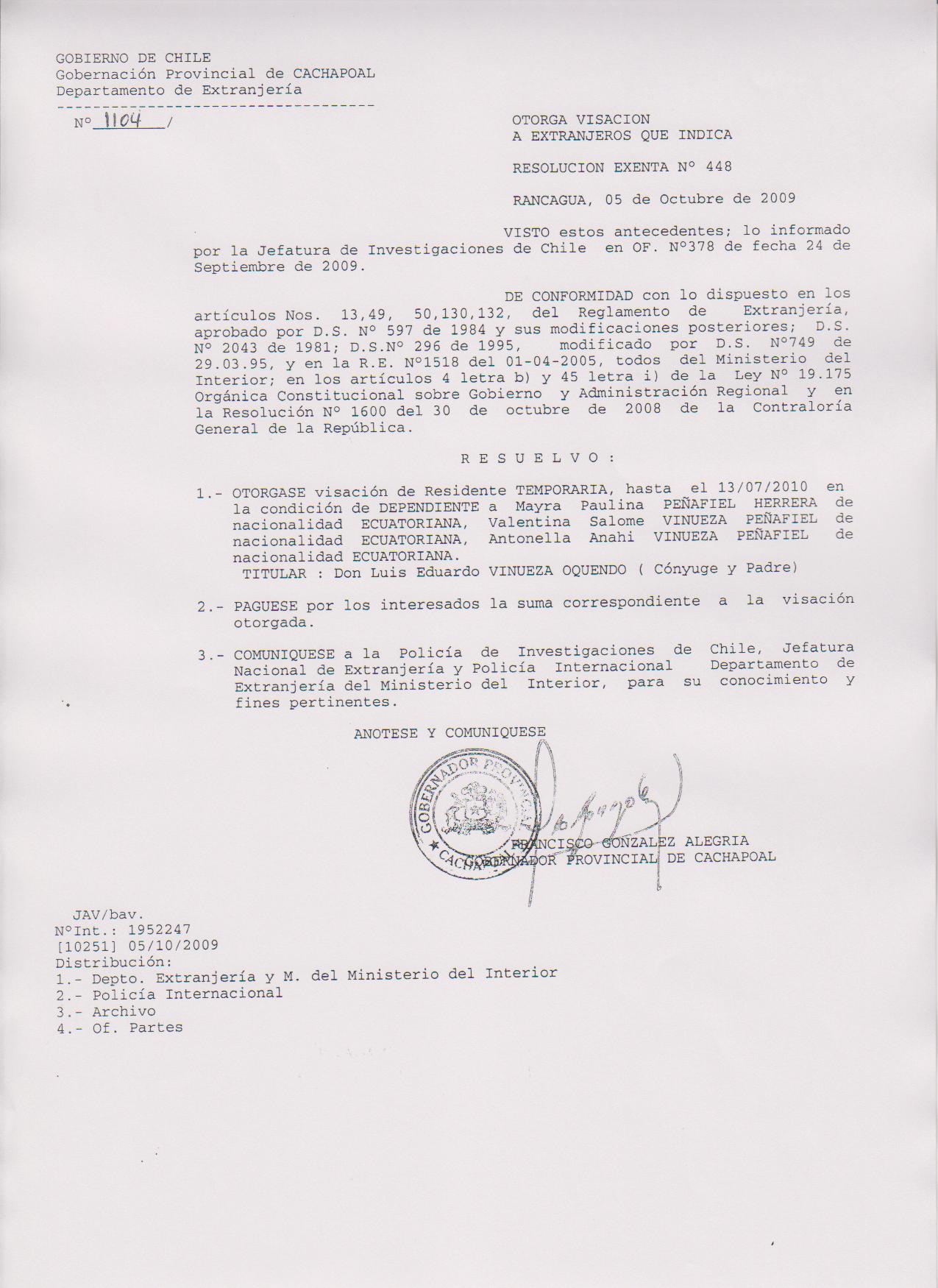 OTORGA PRORROGA VISA |