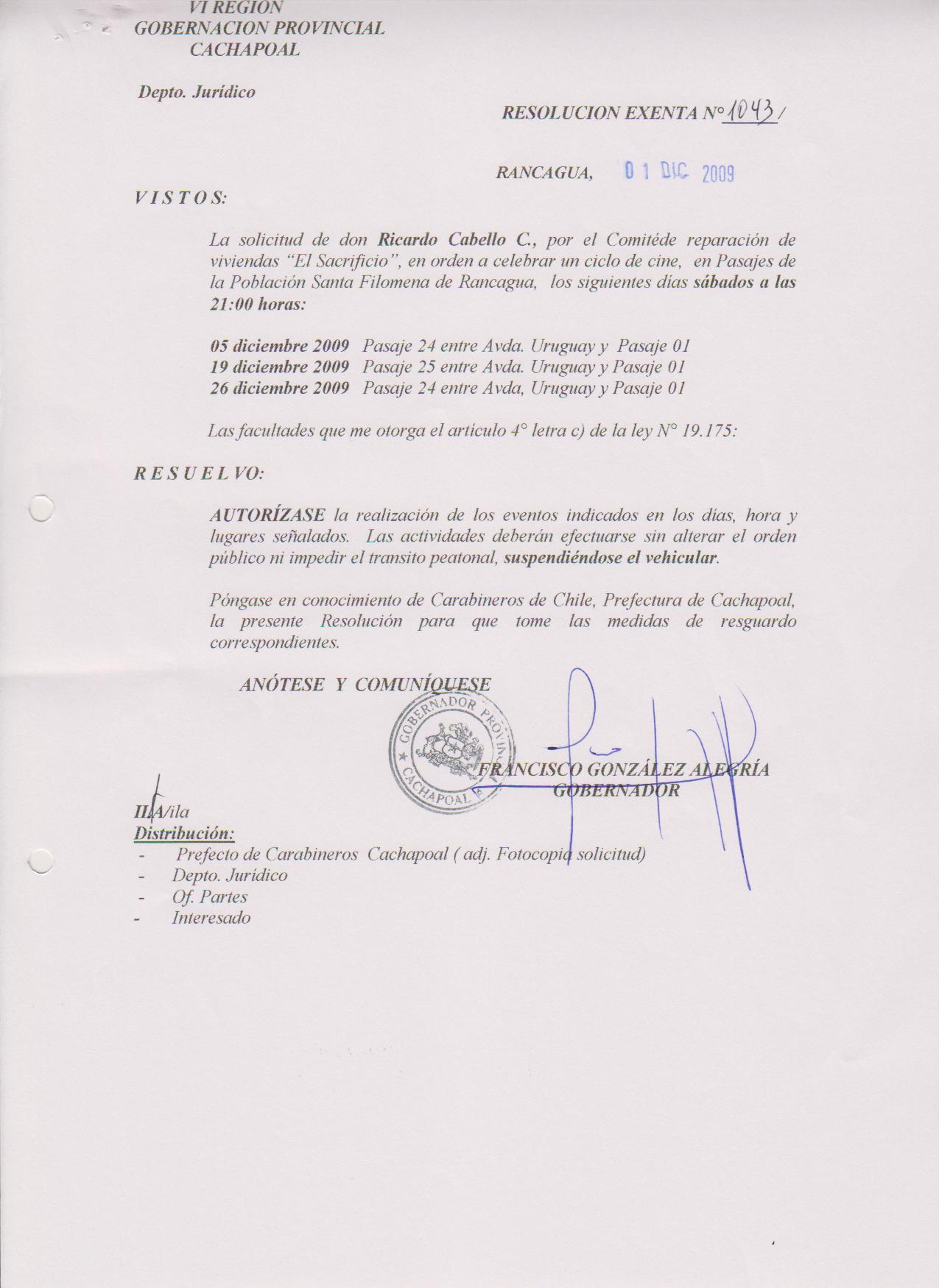 AUTORIZA CICLO DE CINE EN LA COMUNA DE RANCAGUA |