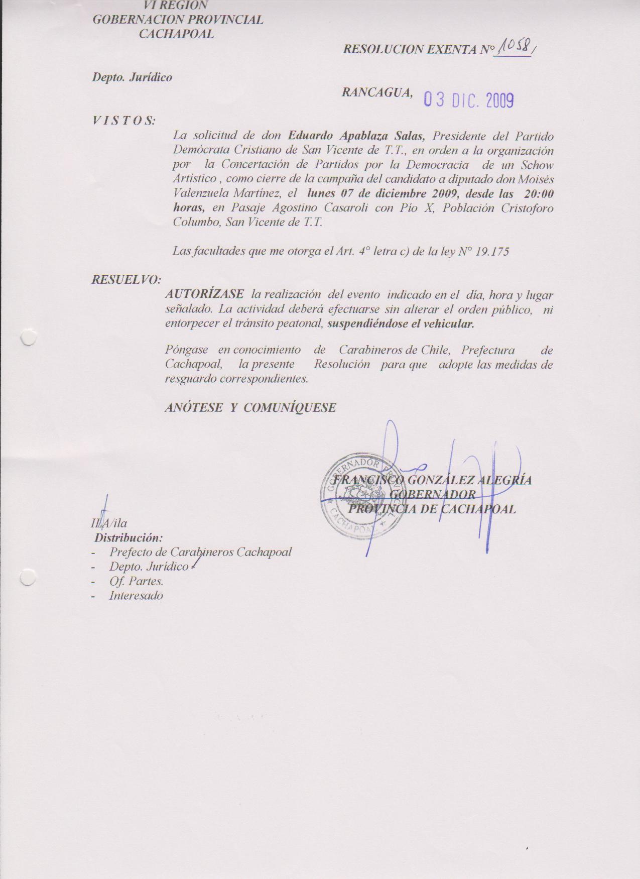 AUTORIZA SHOW POLITICO ARTISTICO EN LA COMUNA DE RENGO |