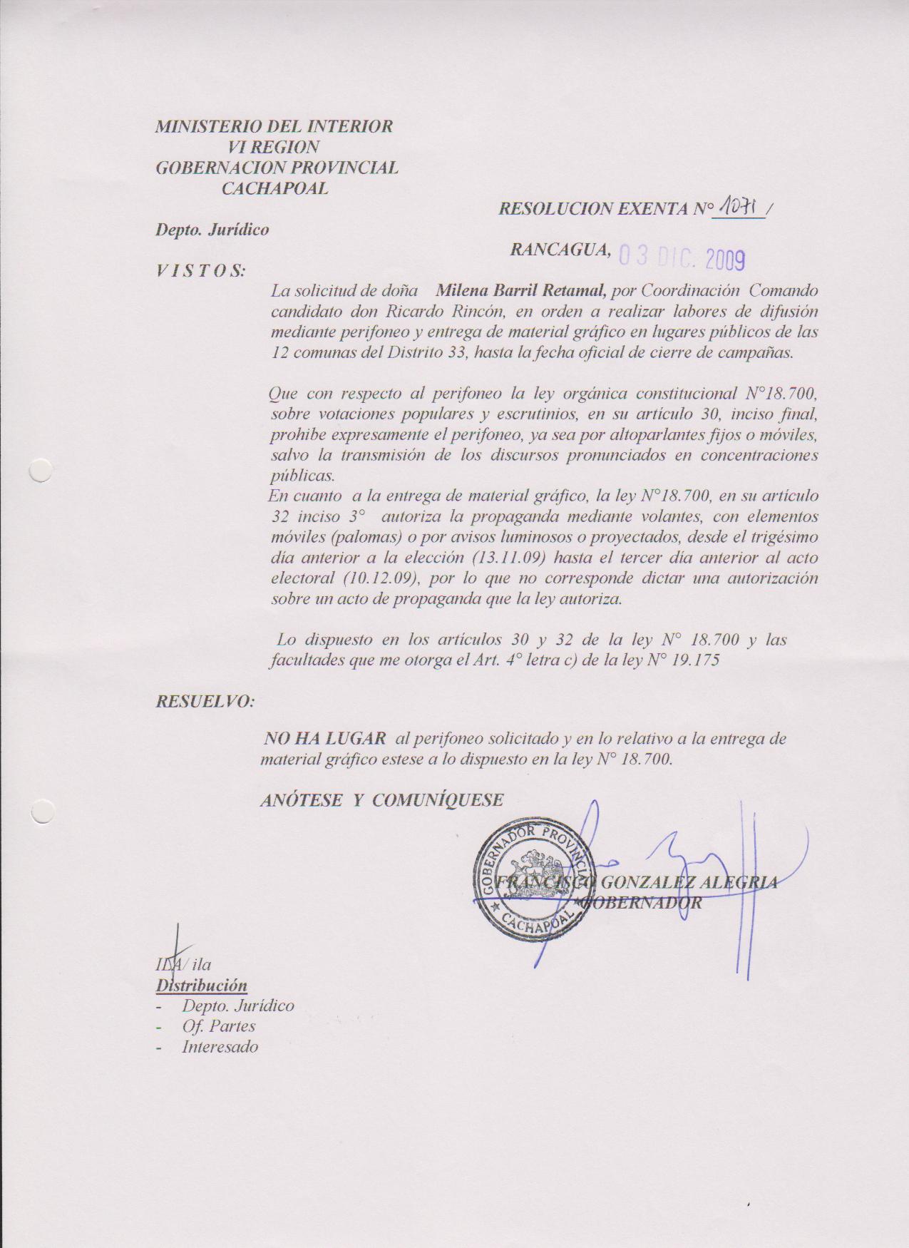 AUTORIZA ACTO DE CIERRE CAMPAÑA POLITICA EN LA COMUNA DE RANCAGUA |
