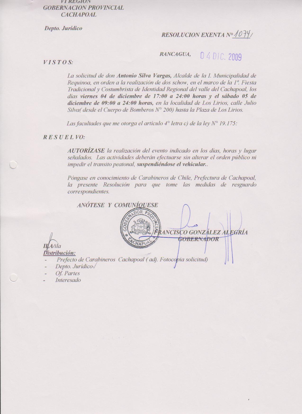 AUTORIZA ACTO PÚBLICO CULTURAL EN LA COMUNA DE REQUINOA |