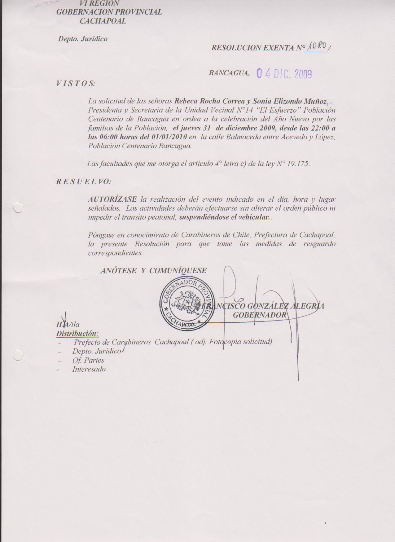 AUTORIZA CELEBRACION AÑO NUEVO DE JUNTA DE VECINOS CENTENARIO |