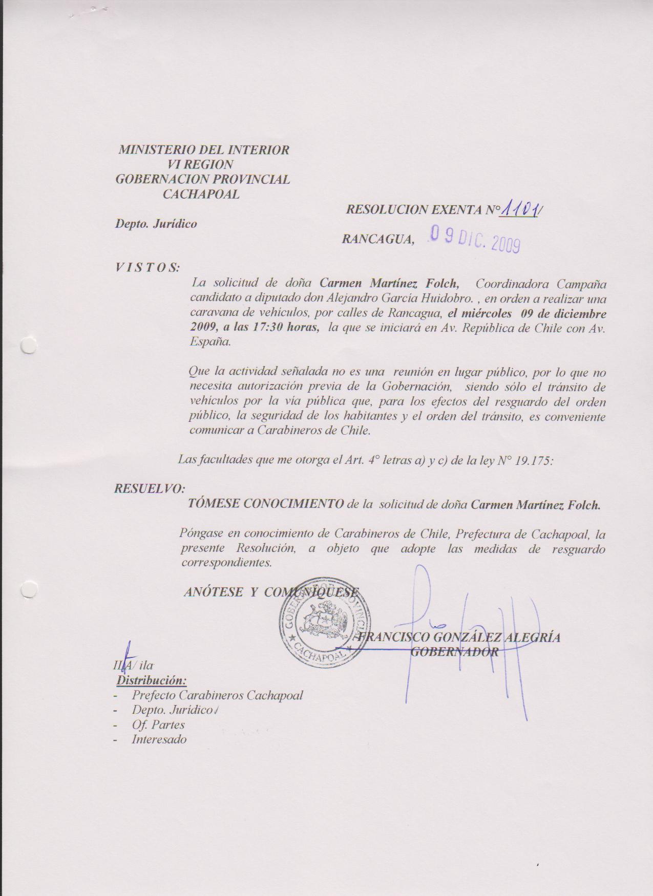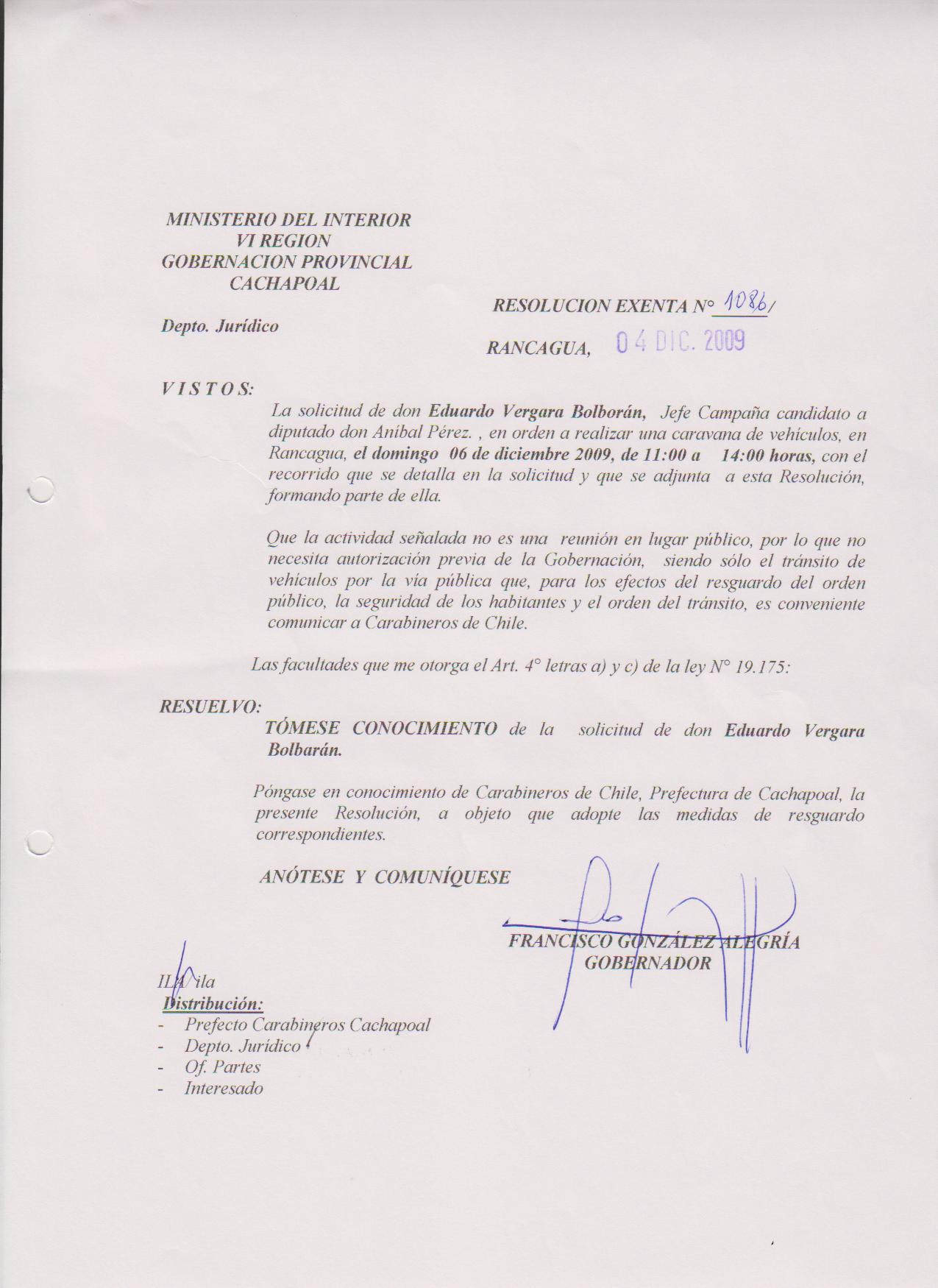 AUTORIZA CARAVANA DE VEHICULOS EN LA COMUNA DE RANCAGUA |
