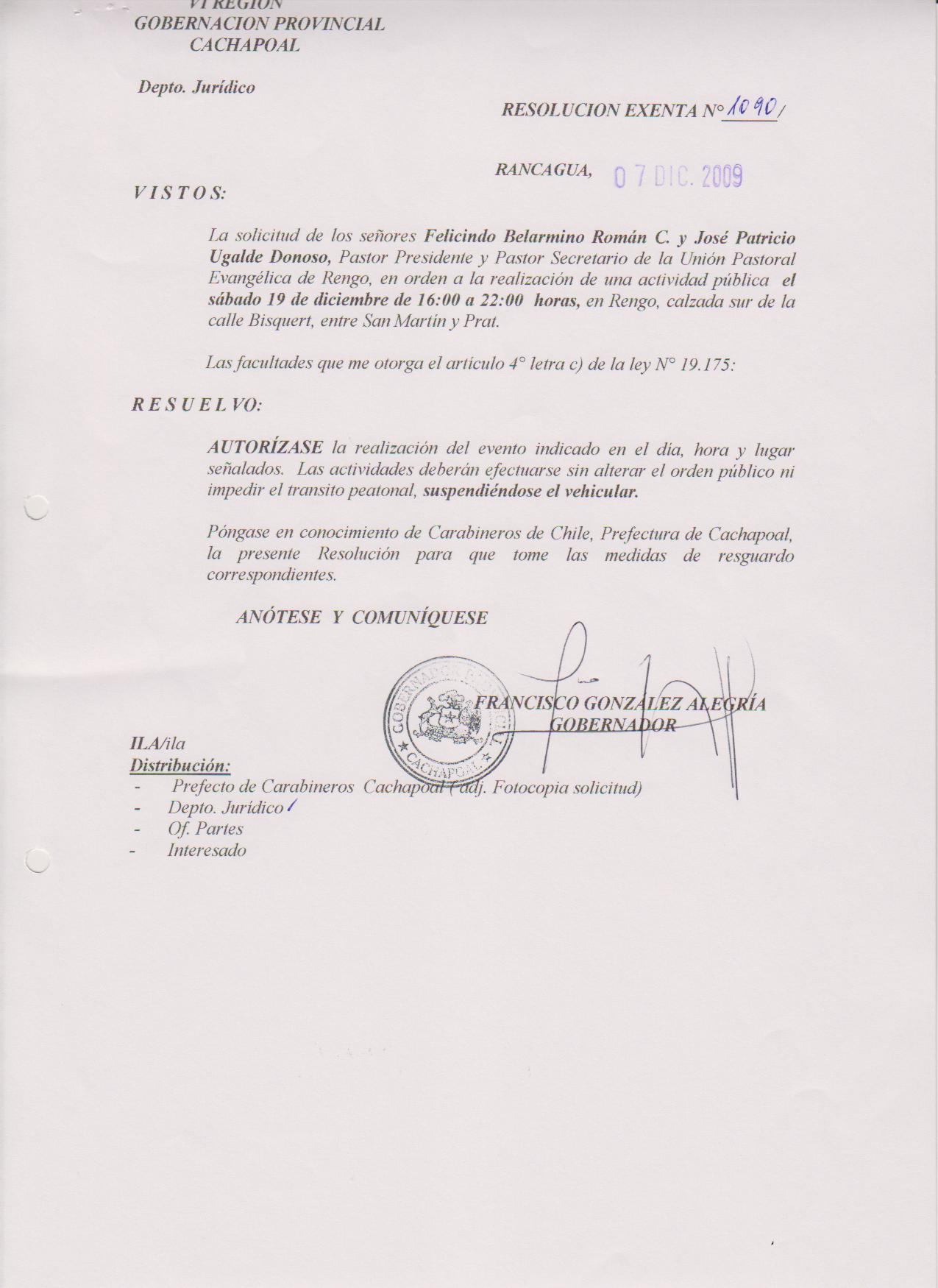 AUTORIZA PUBLICA EVANGELICA EN LA COMUNA DE RENGO |