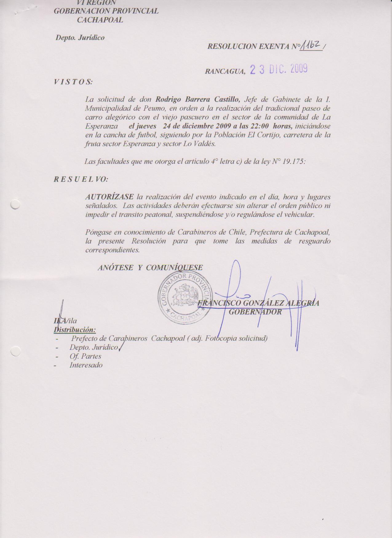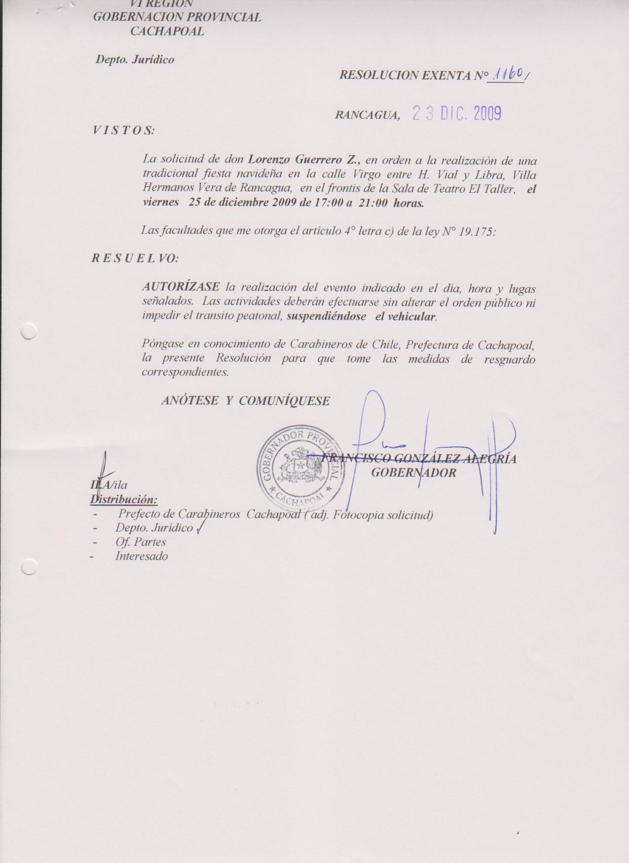 AUTORIZA CELEBRACION NAVIDAD VILLA EL ROMERAL COMUNA DE RENGO |