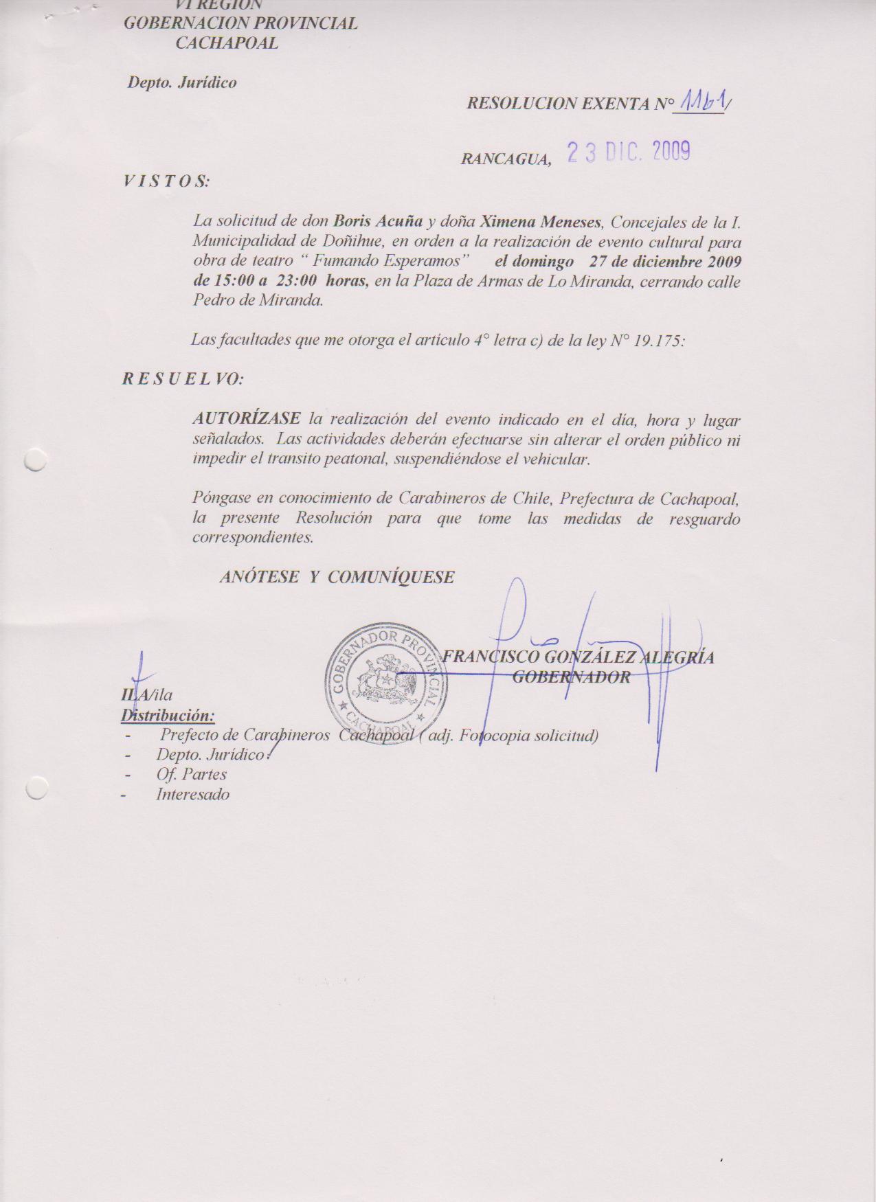AUTORIZA ACTIVIDAD CULTURAL EN LA COMUNA DE DOÑIHUE |
