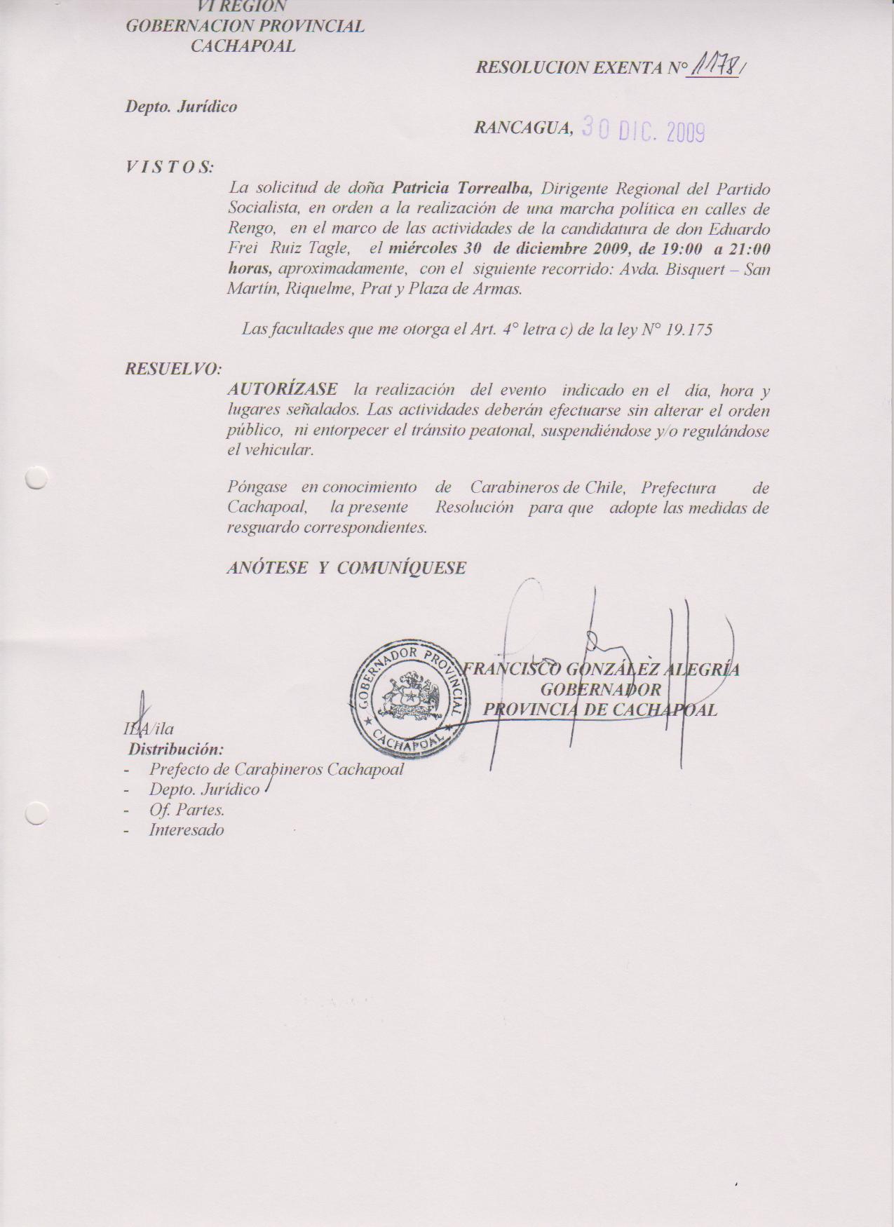 AUTORIZA EVENTO POLITICO CULTURAL EN LA COMUNA DE RANCAGUA |