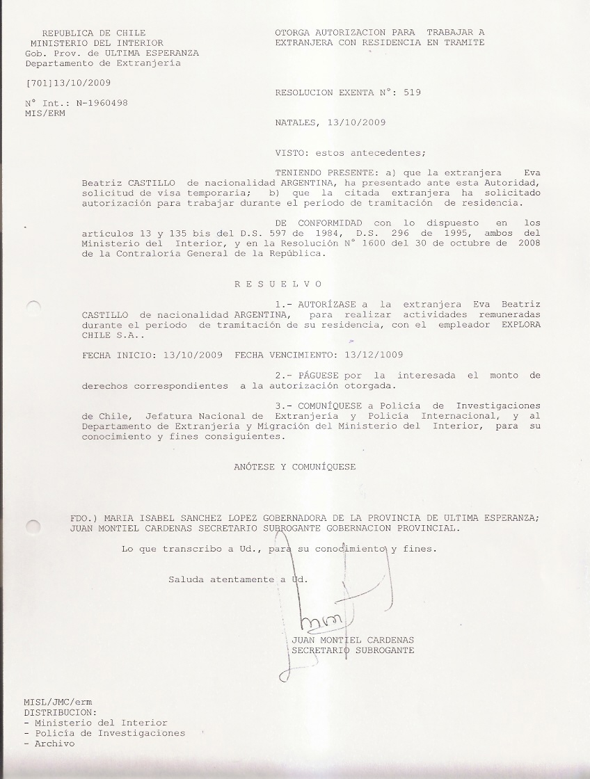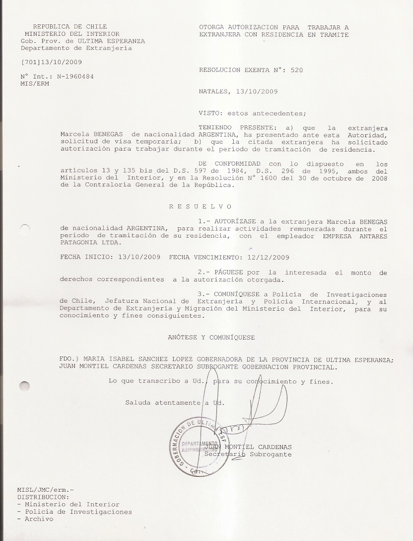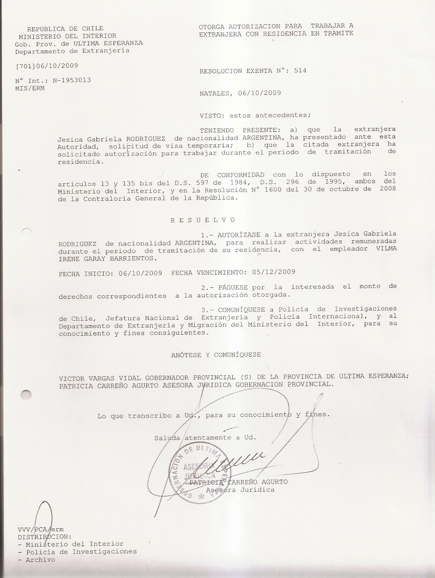 OTORGA AUTORIZACION PARA TRABAJARA EXTRANJERA |