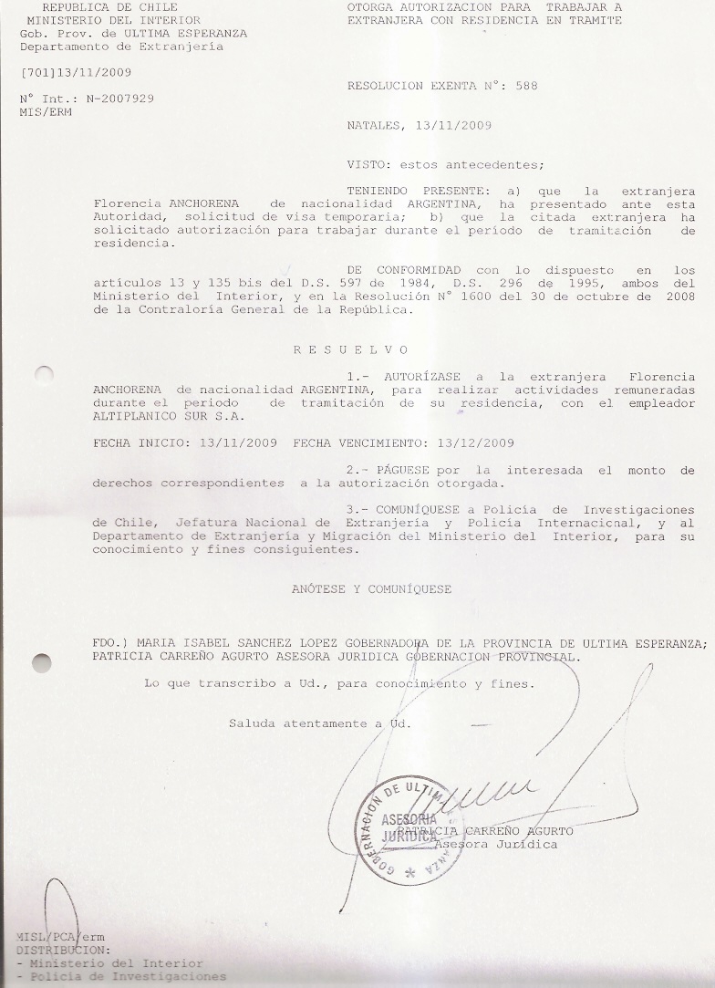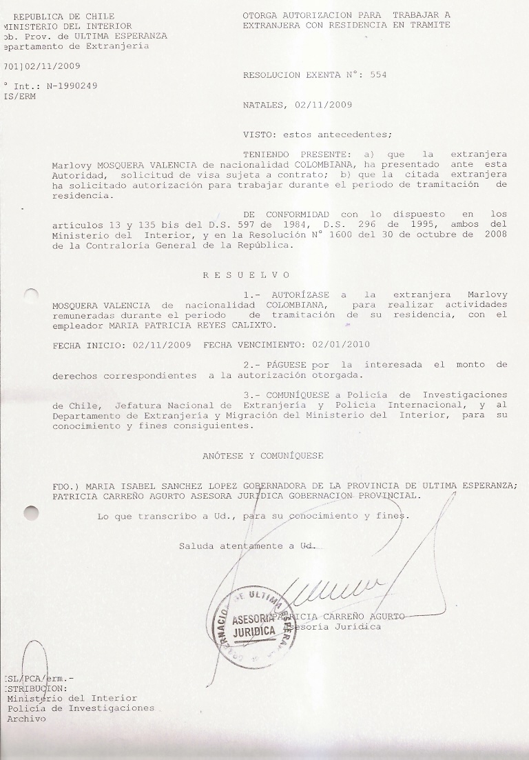 OTORGA AUTOEIZACION PARA TRABAJAR A EXTRANJERA CON RESIDENCIA EN TRAMITE |