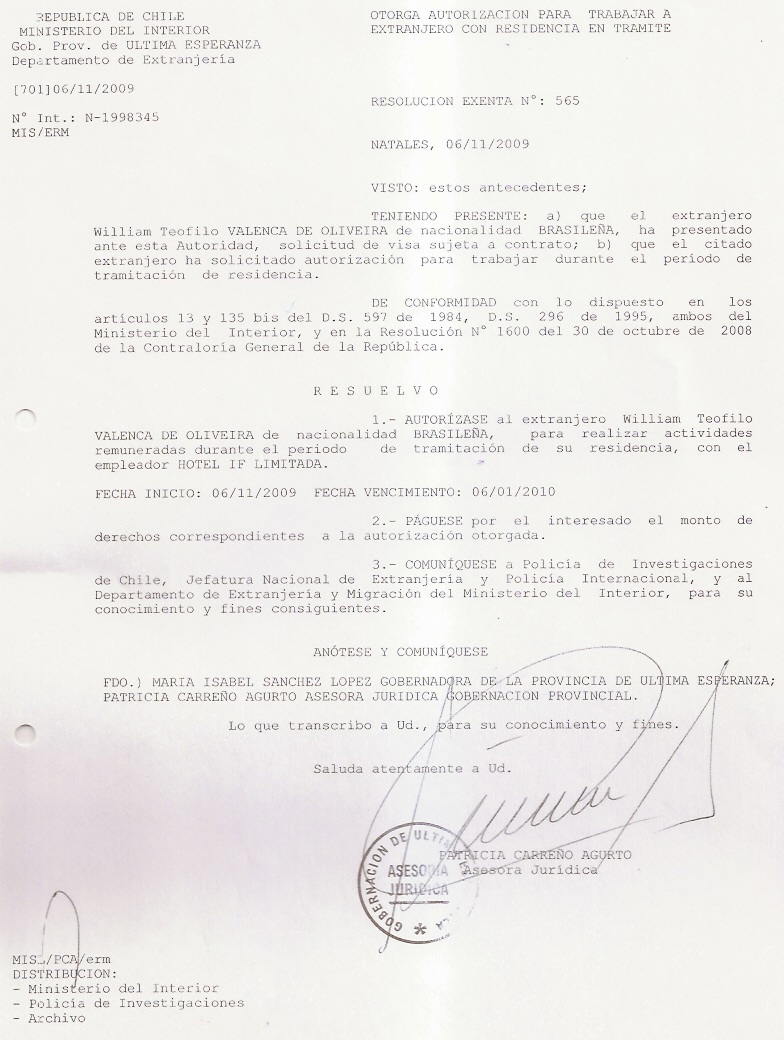 PARA TRABAJAR CON VISA EN TRAMITE A CIUDADANO DE NACIONALIDAD BRASIOLEÑA, WILLIAM VALENKA DE OLIVERA |