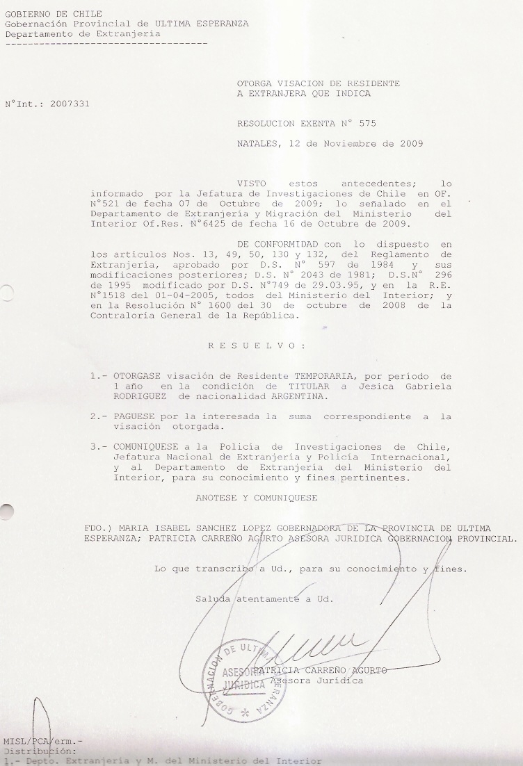 OTORGAMIENTO DE VISA DE RESIDENCIA A CIUDADANA DE NACIONALIDAD ARGENTINA, JESICA GABRIELA RODRIGUEZ |