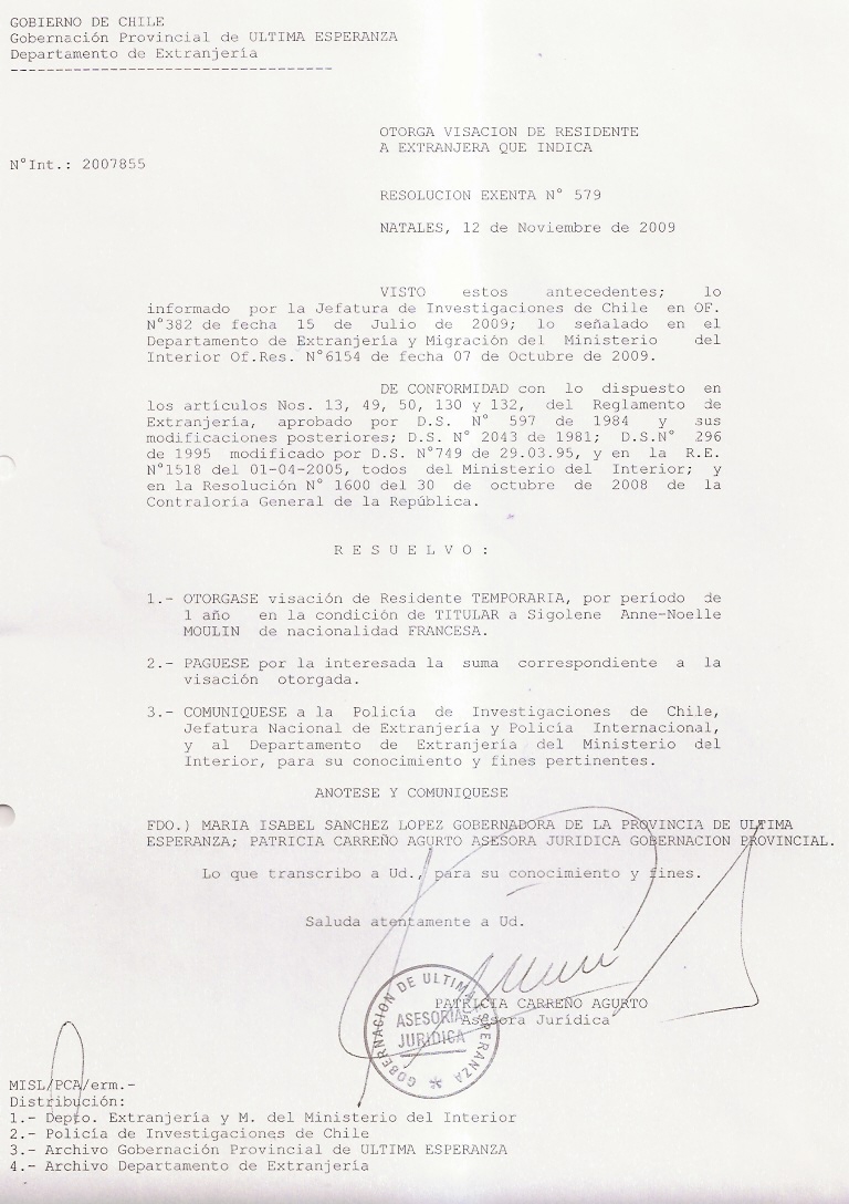 OTORGAMIENTO DE VISA DE RESIDENCIA A CIUDADANA DE NACIONALIDAD FRANCESA, SIGOLENE ANNE NOELLE |