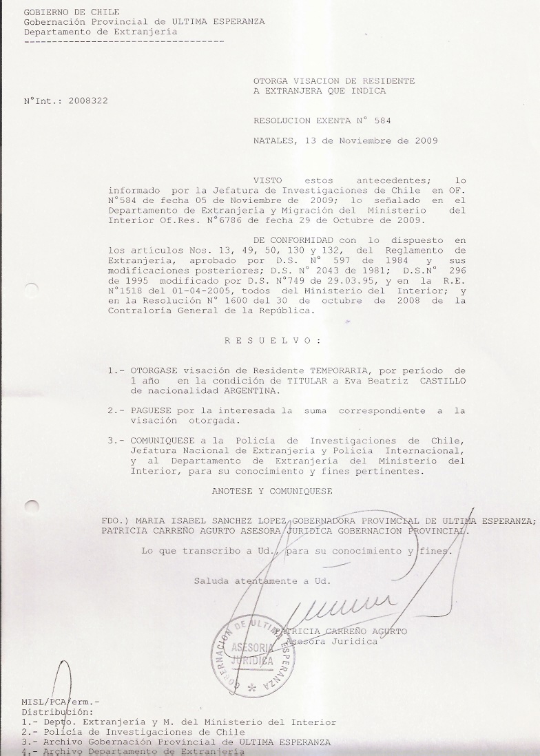 OTORGAMIENTO DE VISA DE RESIDENCIA A CIUDADANA DE NACIONALIDAD ARGENTINA, EVA BEATRIZ CASTILLO |