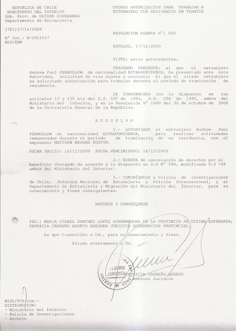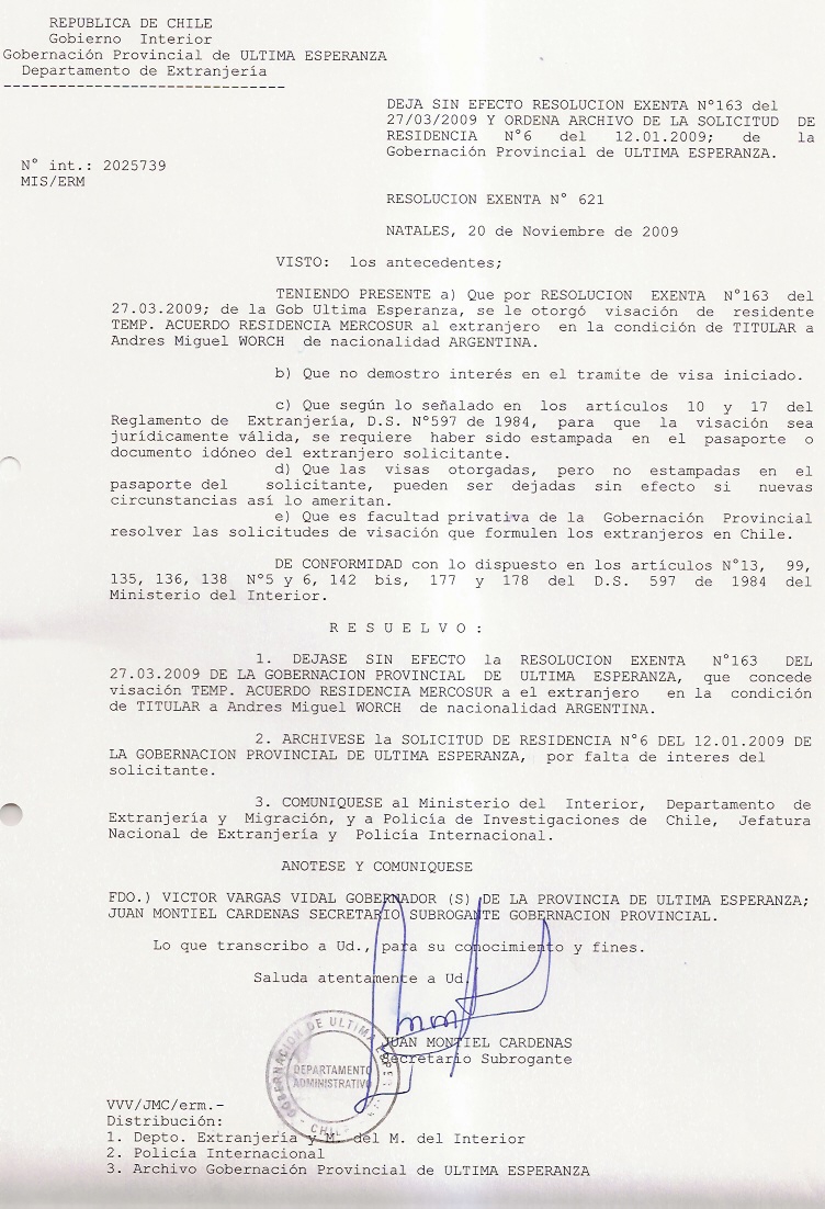 AUTORIZACION PARA TRABAJAR CON VISA EN TRAMITE A CIUDADANO DE NACIONALIDAD ARGENTINA, ANDRES MIGUEL WORCH |