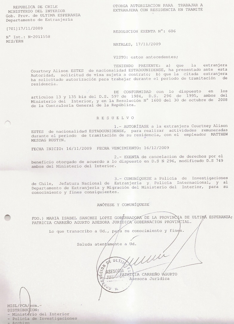 AUTORIZACION PARA TRABAJAR CON VISA EN TRAMITE A CIUDADANA DE NACIONALIDAD ESCOSESA, RUTH CRAVEN |