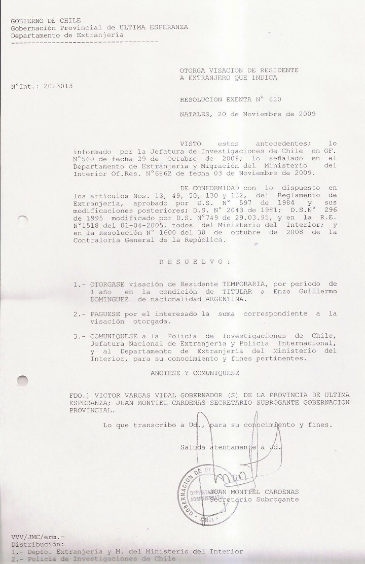 OTORGAMIENTO DE VISA DE RESIDENCIA A CIUDADANA DE NACIONALIDAD ARGENTINA, JUAN PABLO GOMEZ |