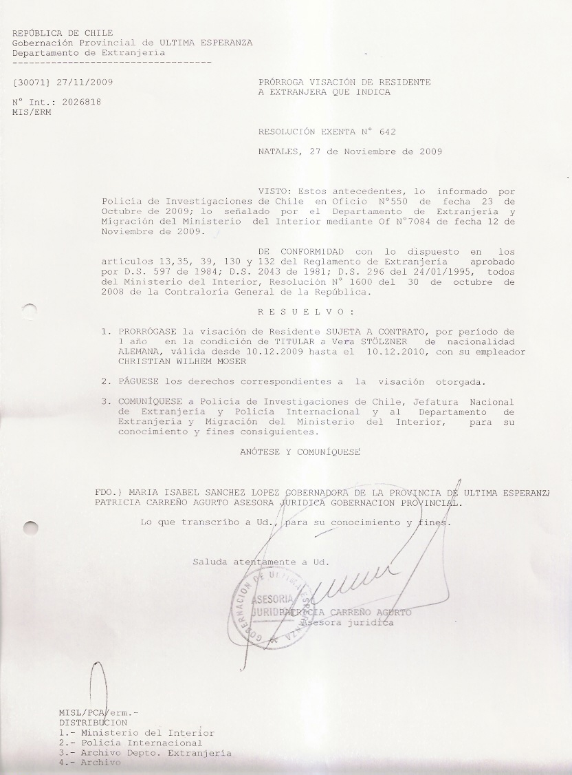 PRORROGA DE VISA SUJETA A CONTRATO A CIUDADANAN ALEMANA, VERA STOLZNER |