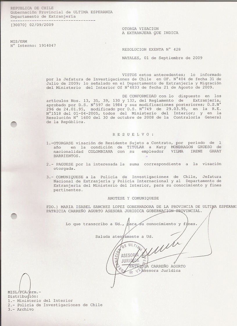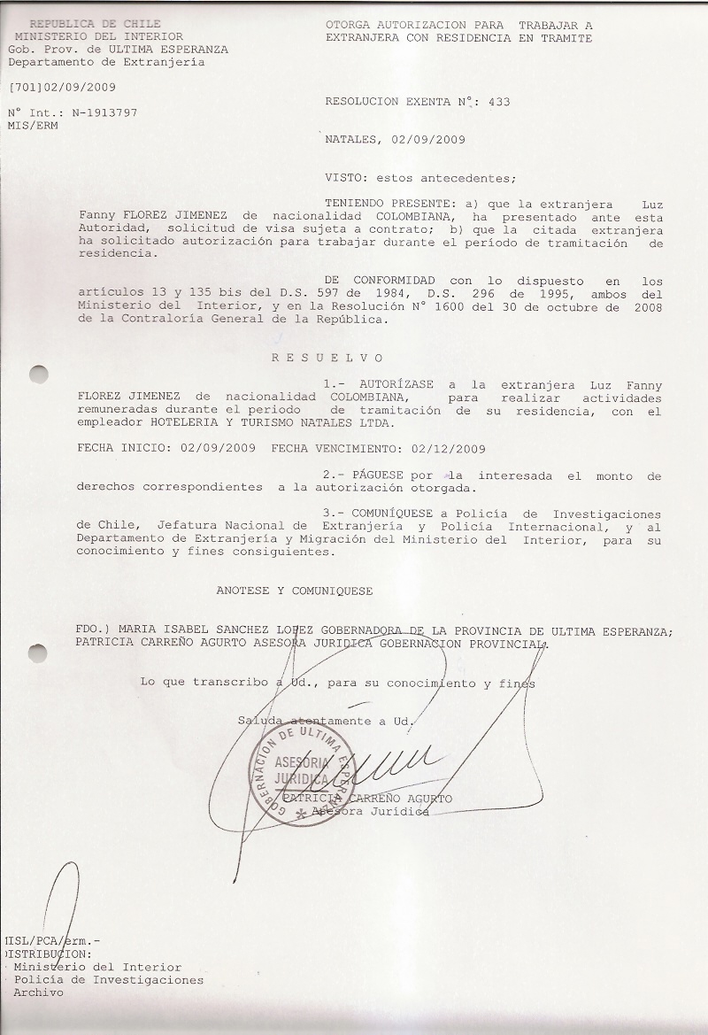 OTORGA AUTORIZACION PARA TRABAJARA EXTRANJERA