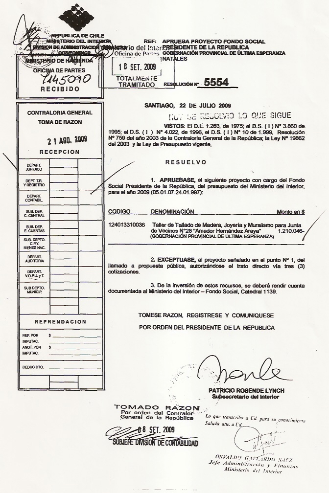 284 26/10/2009  RE N° 194 - 09.abr.2009  Combustible  26/10/2009  26/10/2009  Pesos  25000  Harambuor y Cia. Ltda.        77.583.220-7  Patricio Harambour  Ver enlace   -   null